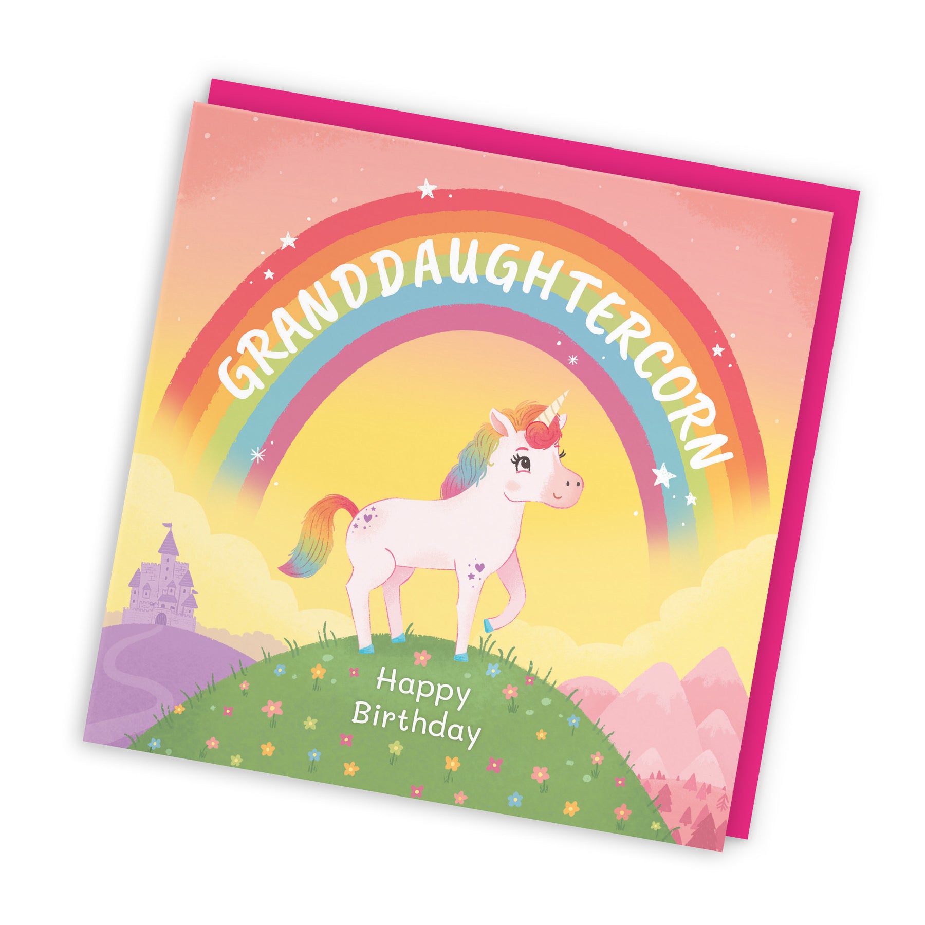 Hunts England - Granddaughter Unicorn Kids Birthday Card - Granddaughtercorn - Happy Birthday - Imagination Collection.