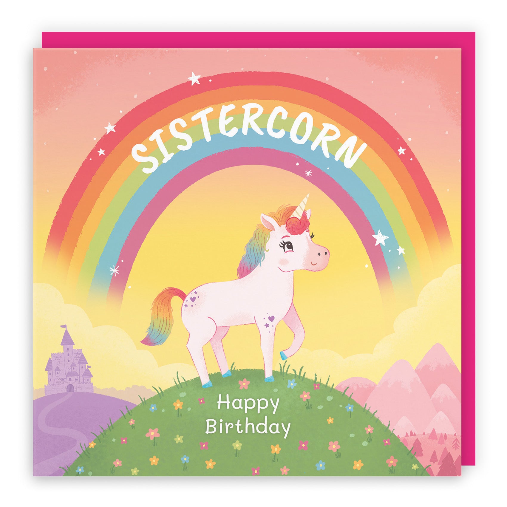 Hunts England - Sister Unicorn Kids Birthday Card - Sistercorn - Happy Birthday - Imagination Collection.