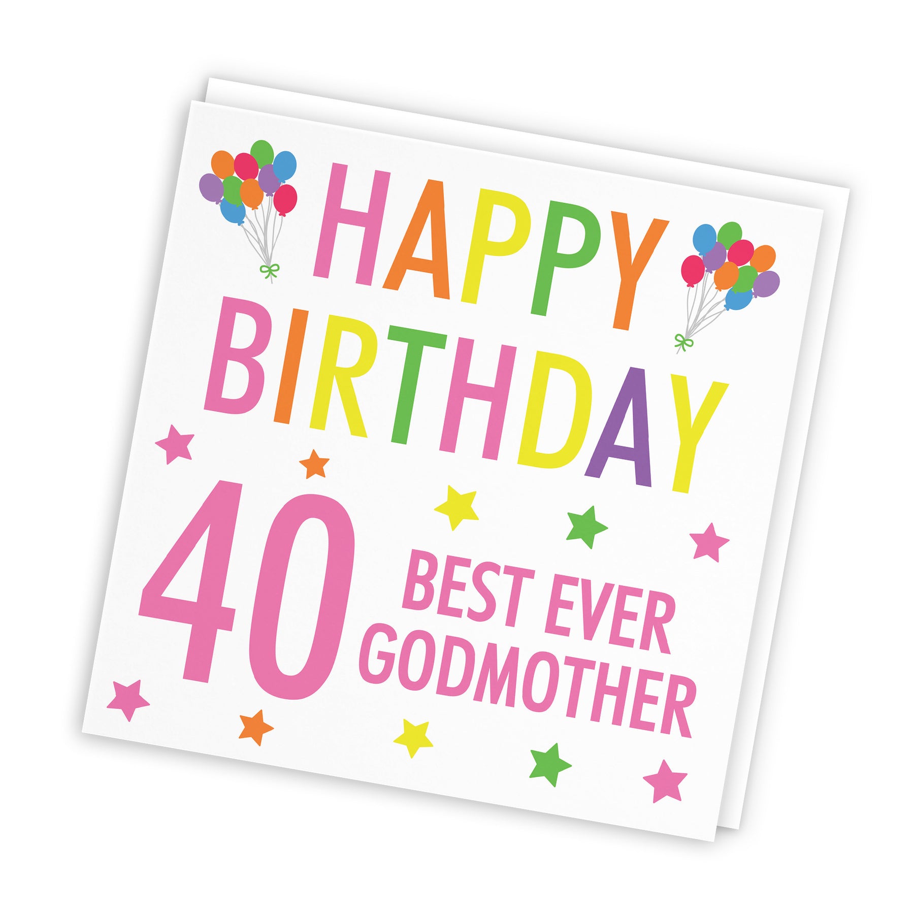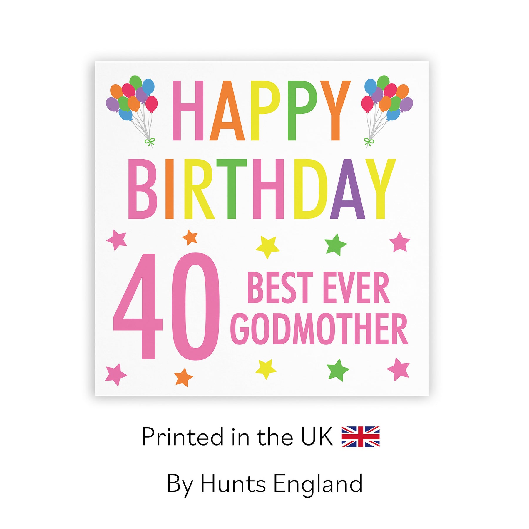 Hunts England - Godmother 40th Birthday Card - Happy Birthday - 40 - Best Ever Godmother - Colourful Collection.