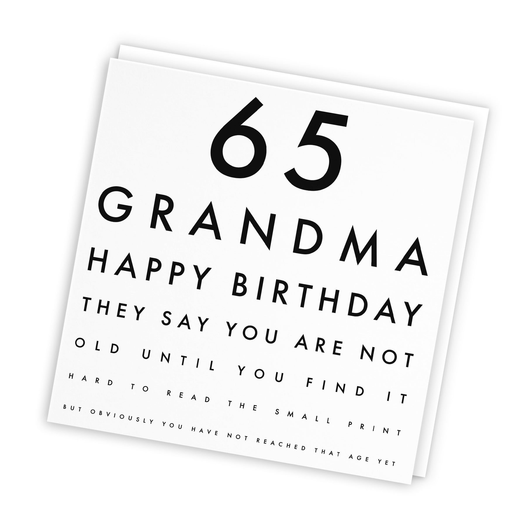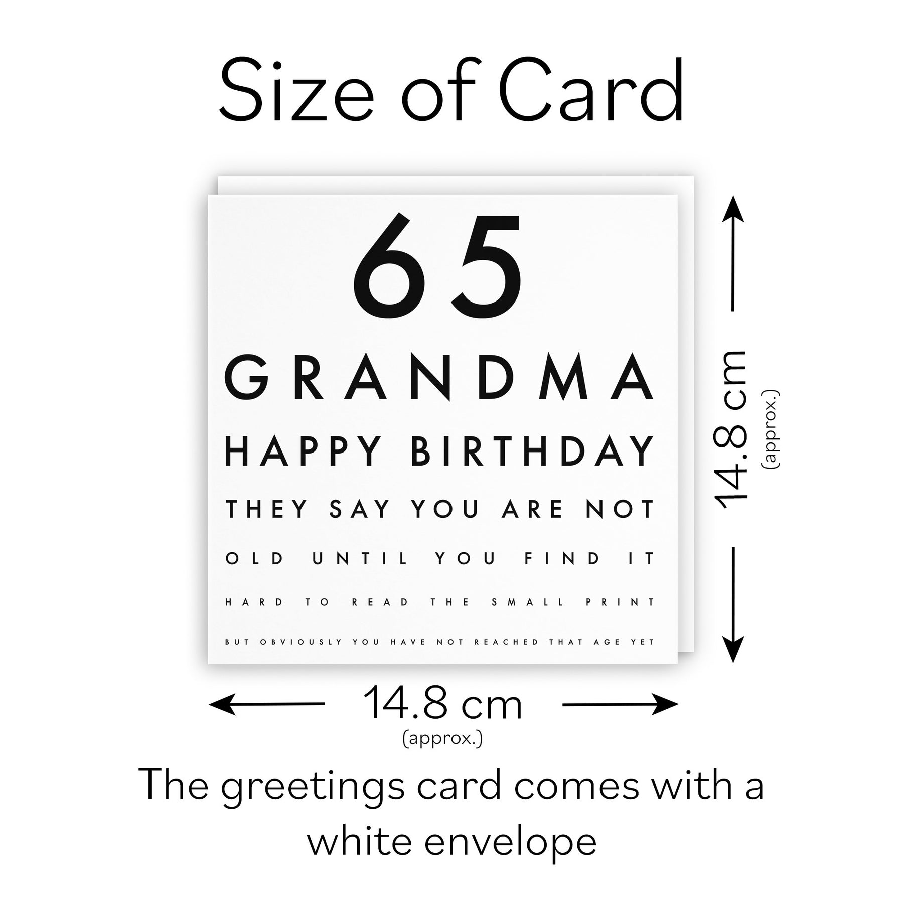 Hunts England - Grandma 65th Humorous Birthday Card - 65 Grandma - Happy Birthday - They Say You Are Not Old Until You Find It Hard To Read The Small Print... - Letters Collection.
