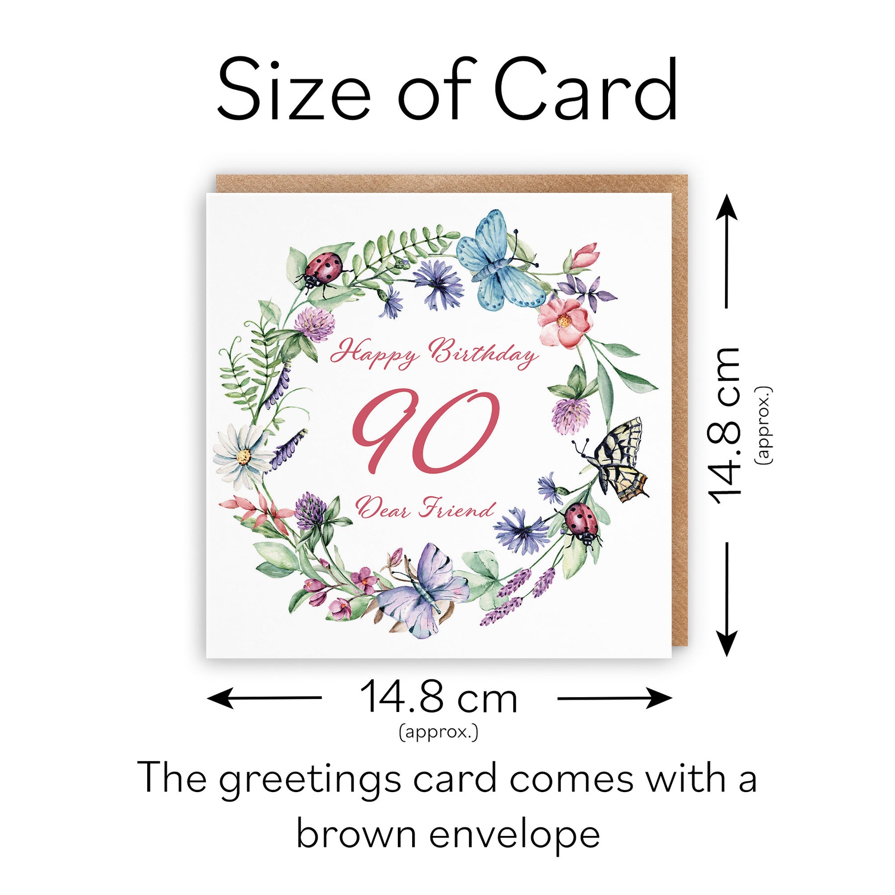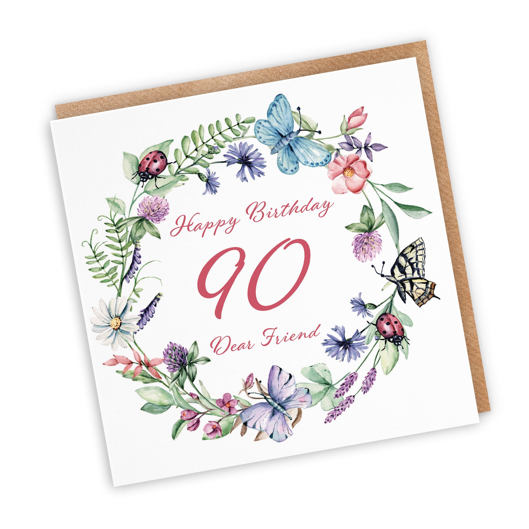 Hunts England - Friend 90th Birthday Card - Happy Birthday - 90 - Dear Friend - Meadow Collection.