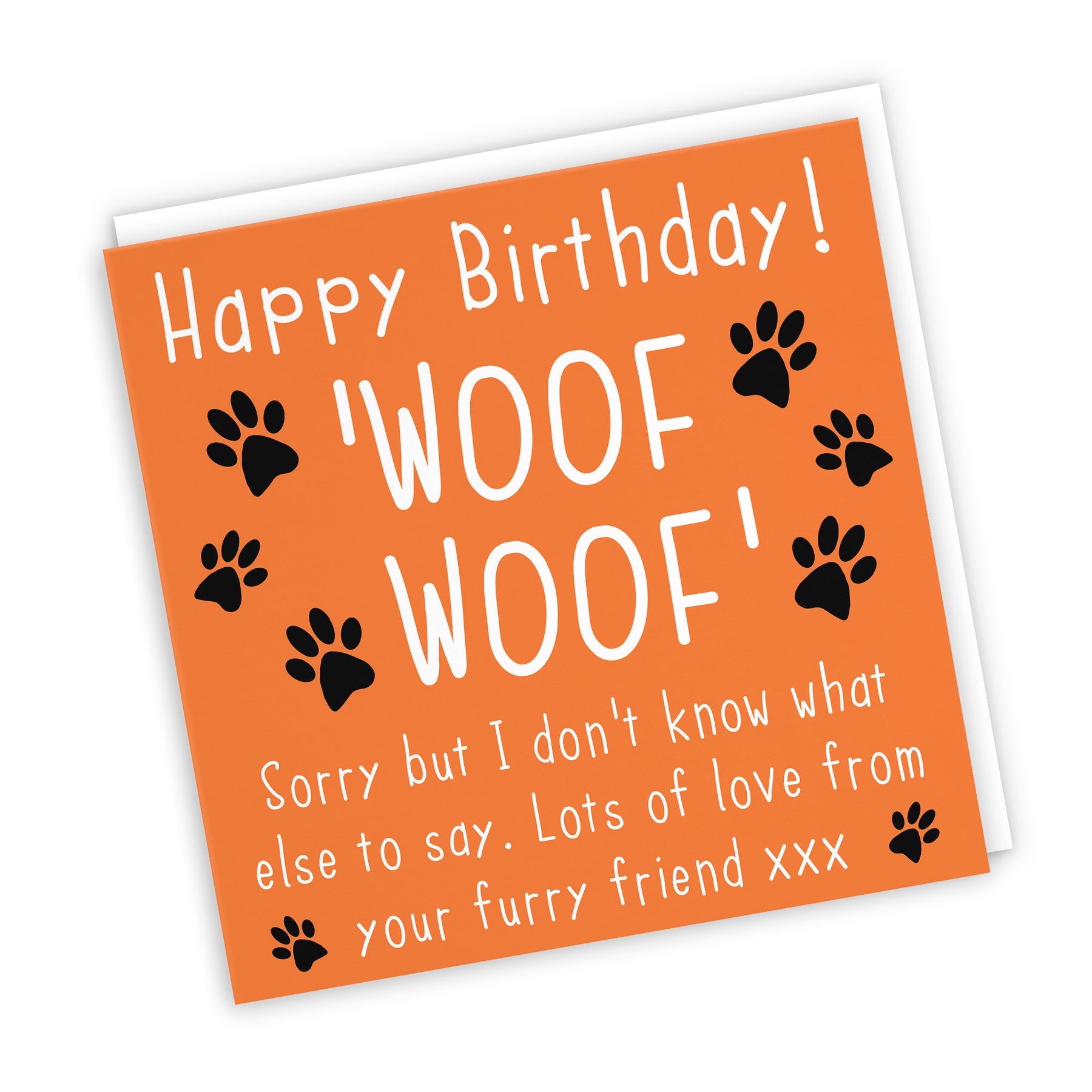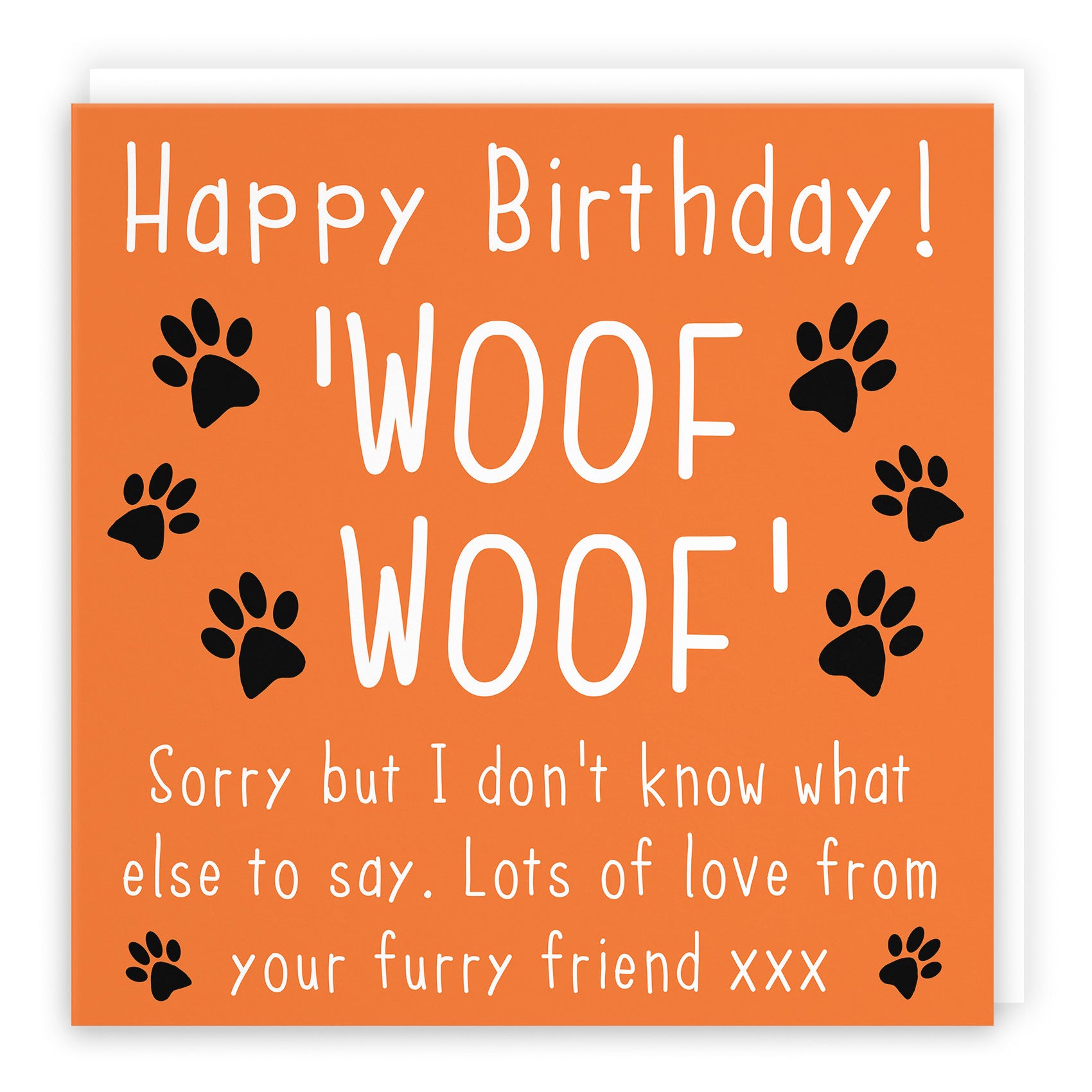 Hunts England - Birthday Card From The Dog - 'Woof Woof' - 'Sorry but I don't know what else to say. Lots of love from your furry friend xxx' - Urban Colour Collection.