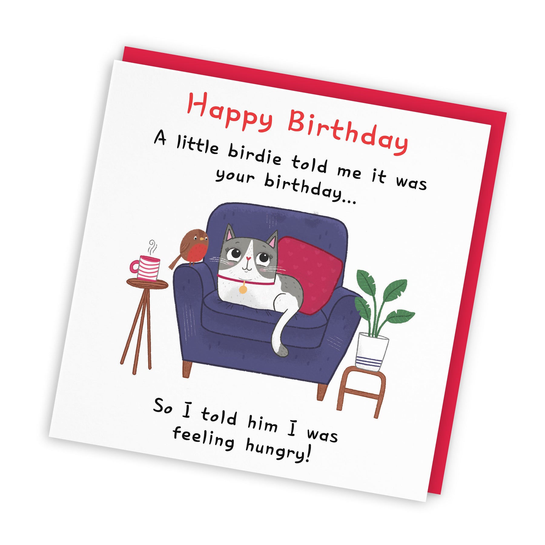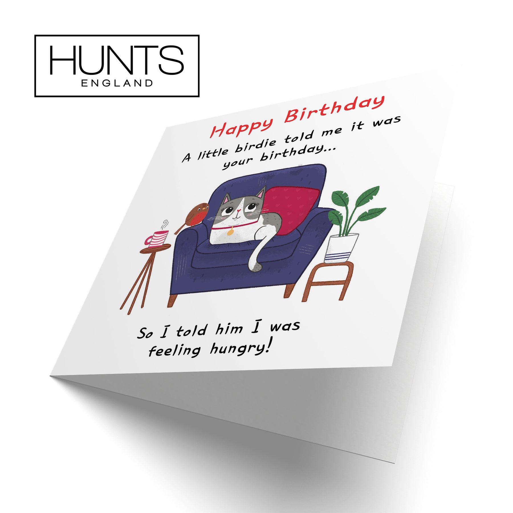 Hunts England - Funny Cat Birthday Card For Him / Her - Happy Birthday - A Little Birdie Told Me - So I Told Him I Was Feeling Hungry! - Iconic Collection.