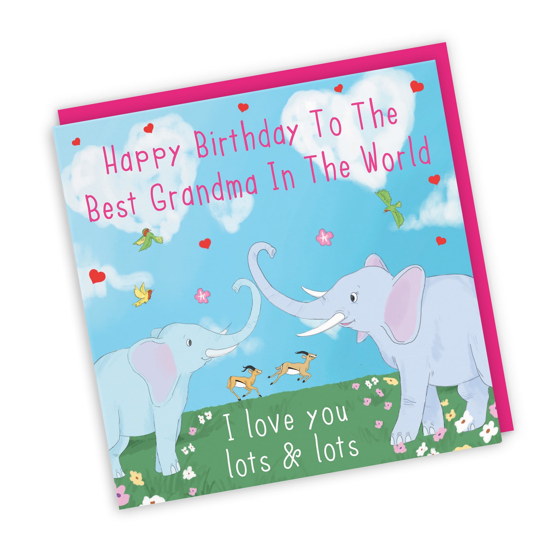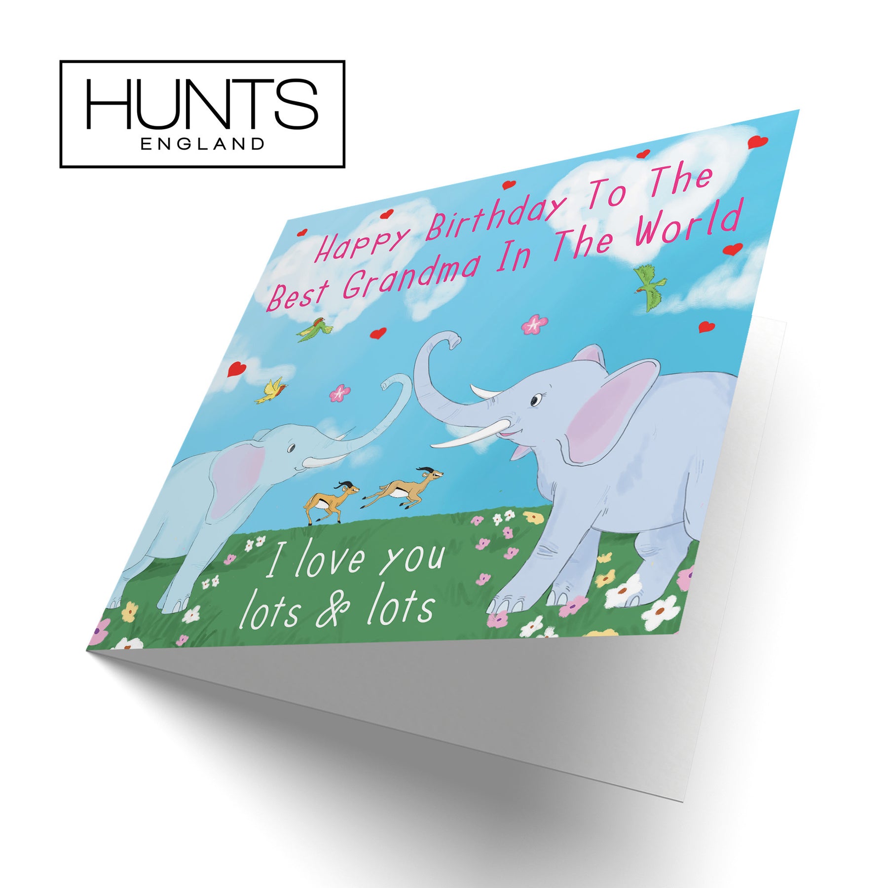 Hunts England - Grandma Cute Elephants Birthday Card - Happy Birthday To The Best Grandma In The World - I Love You Lots & Lots - Card From Young Child - Cute Animals Collection.