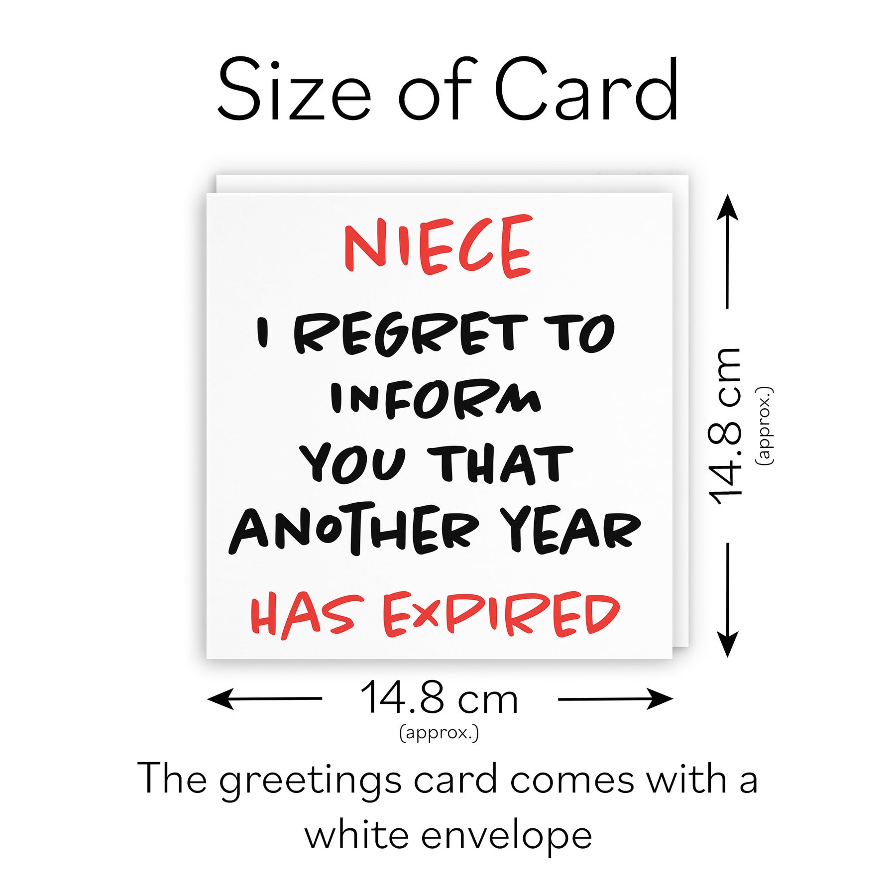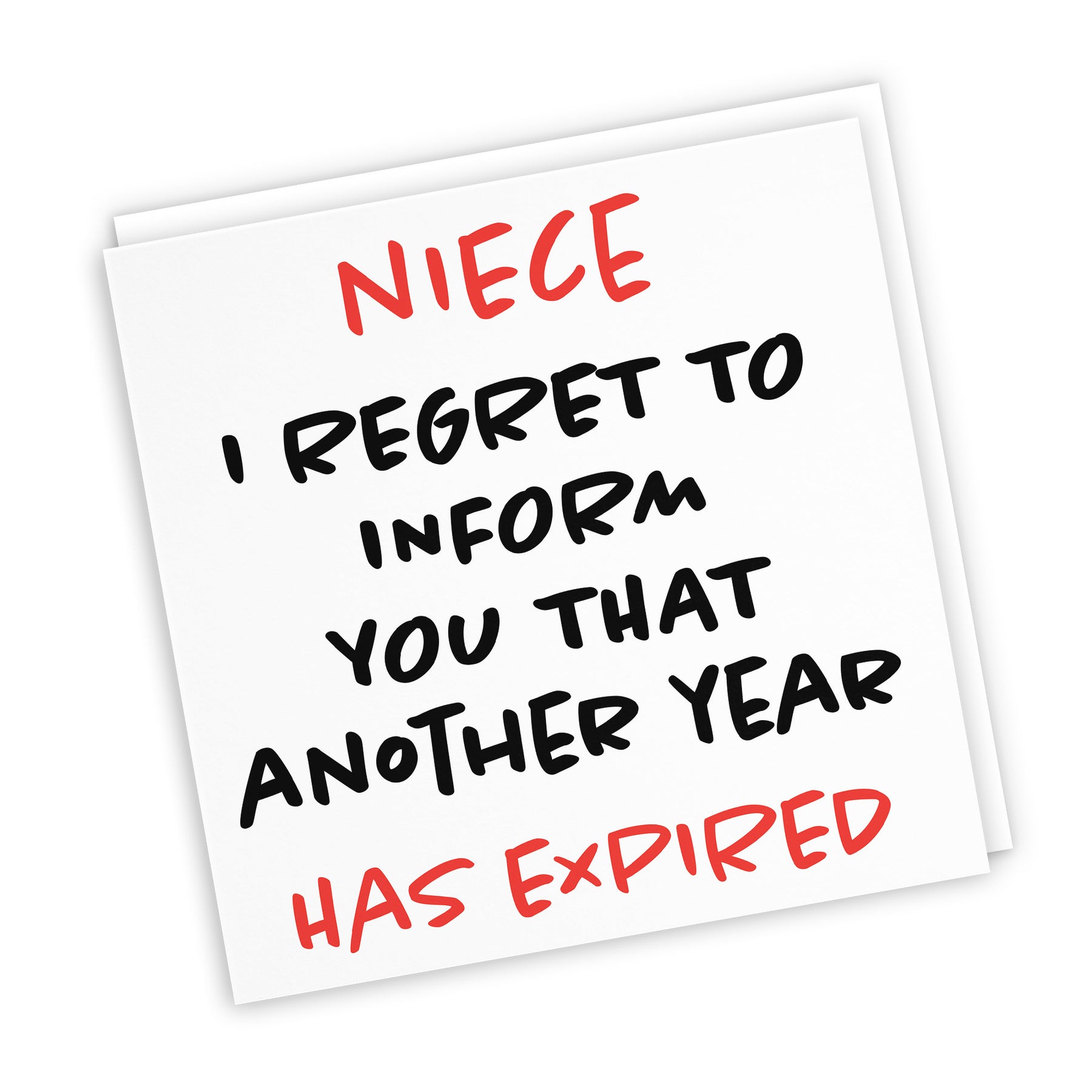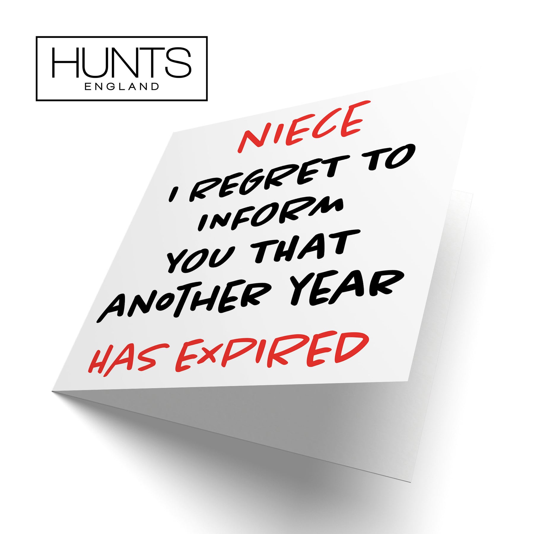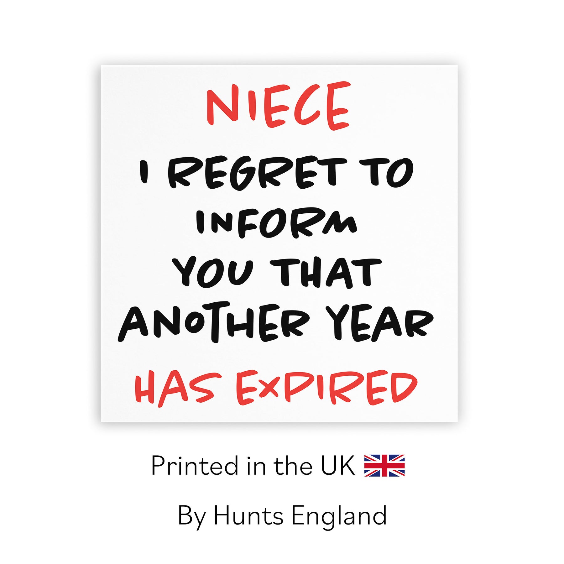 Hunts England - Niece Humorous Birthday Card - Niece - I Regret To Inform You That Another Year Has Expired - Retro Collection.