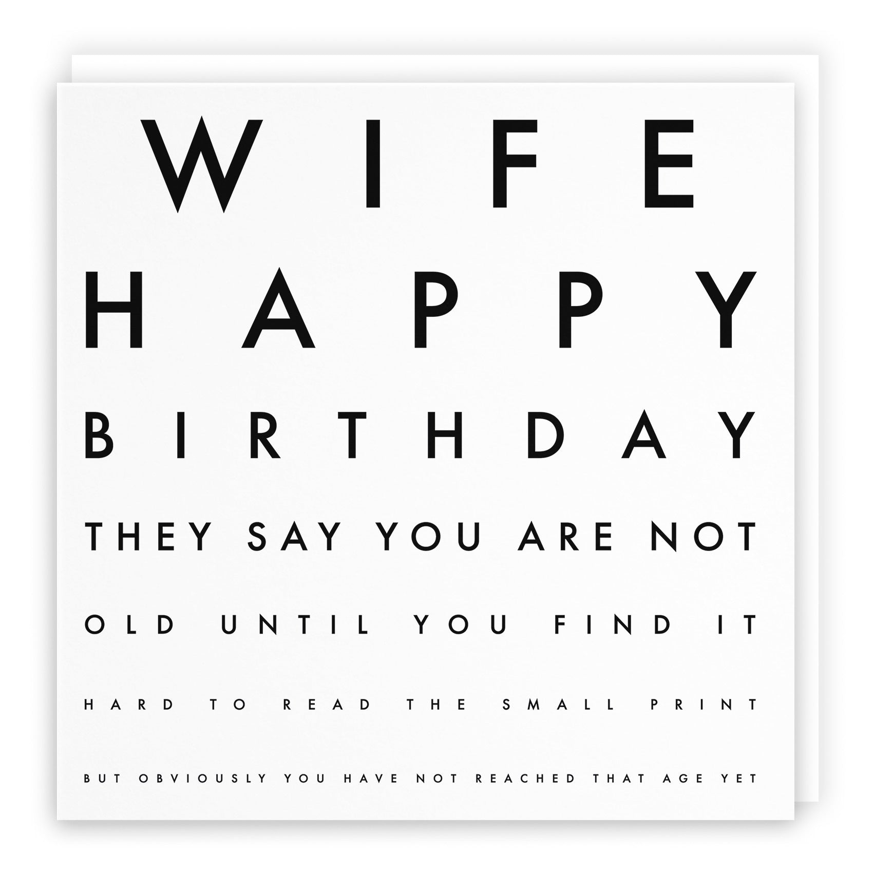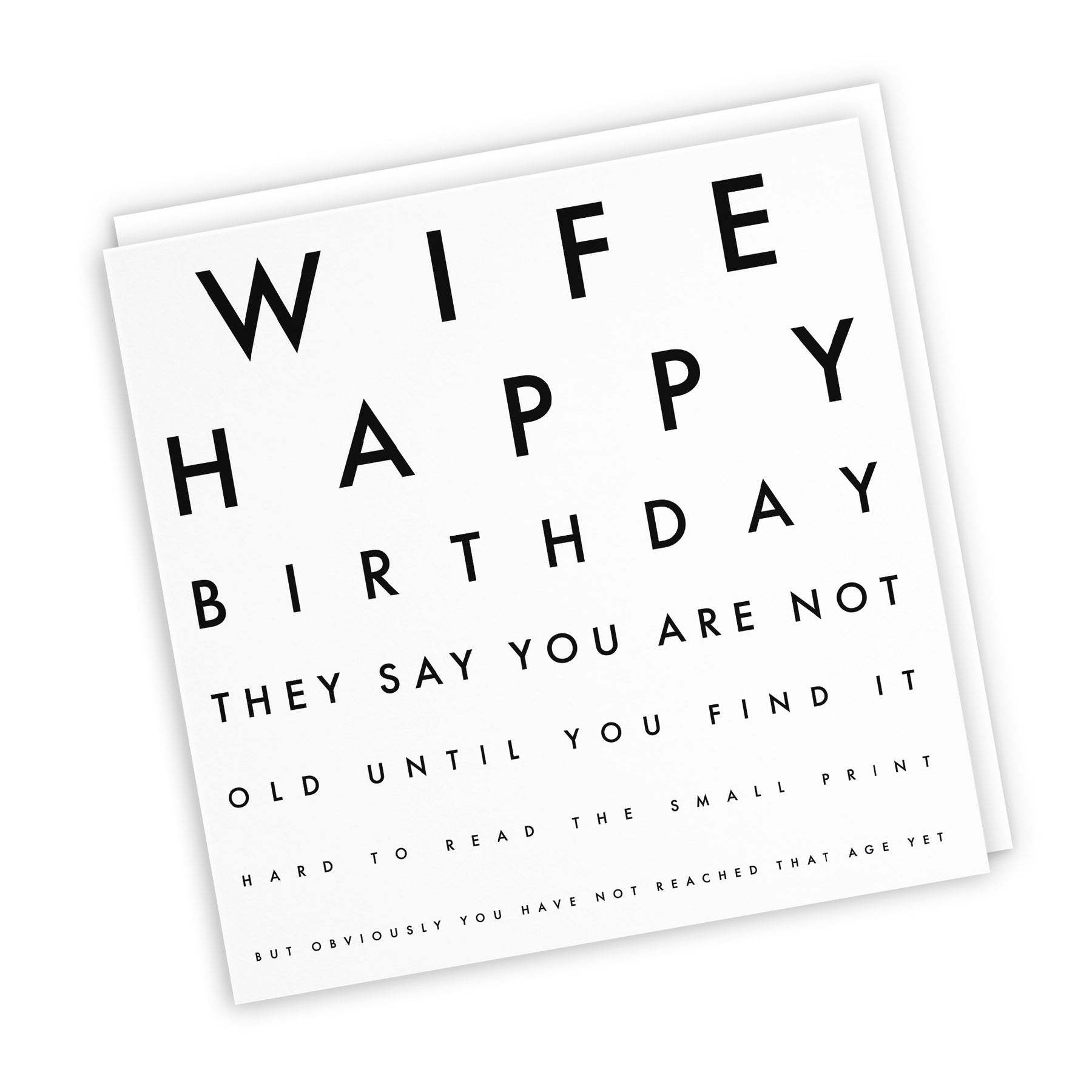 Hunts England - Wife Humorous Joke Birthday Card - Wife - Happy Birthday - They Say You Are Not Old Until You Find It Hard To Read The Small Print... - Letters Collection.