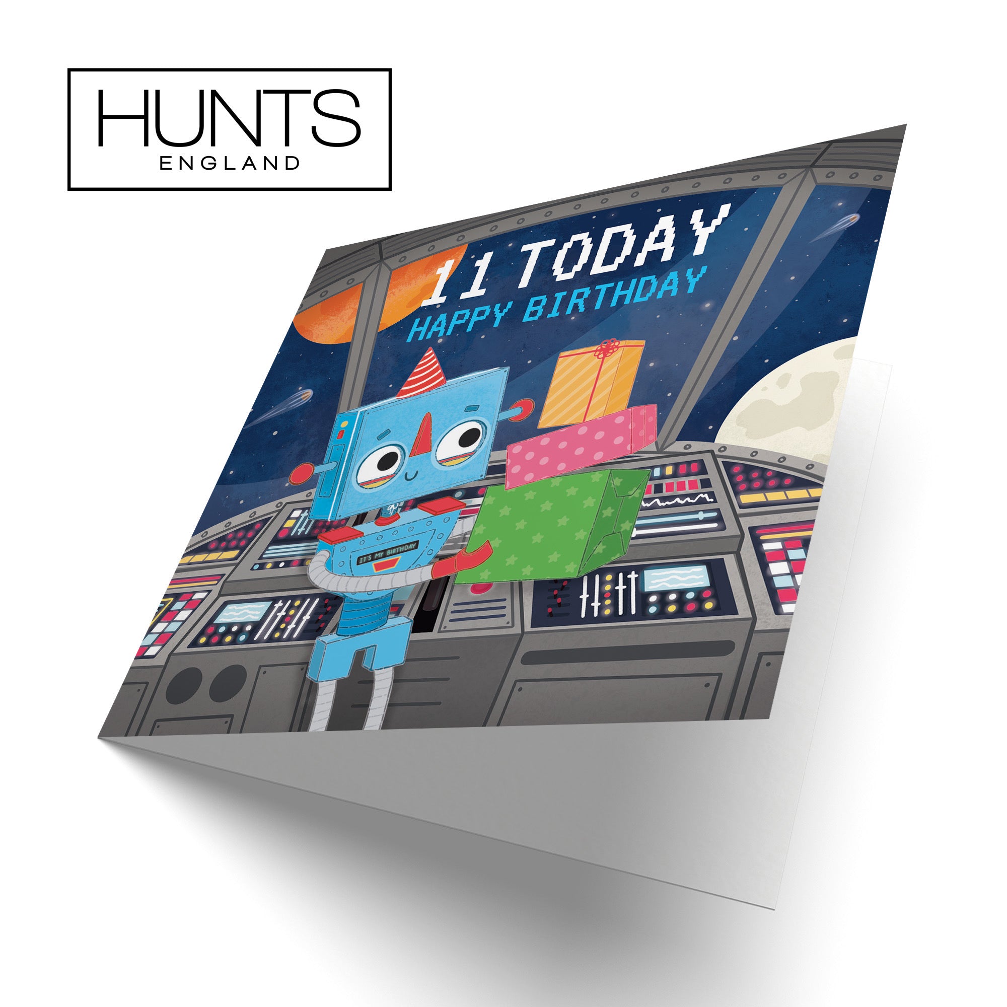 Hunts England - Space Robot Boys 11th Birthday Card - 11 Today - Happy Birthday - Robot On A Spaceship - Children's / Kids Card - Imagination Collection.