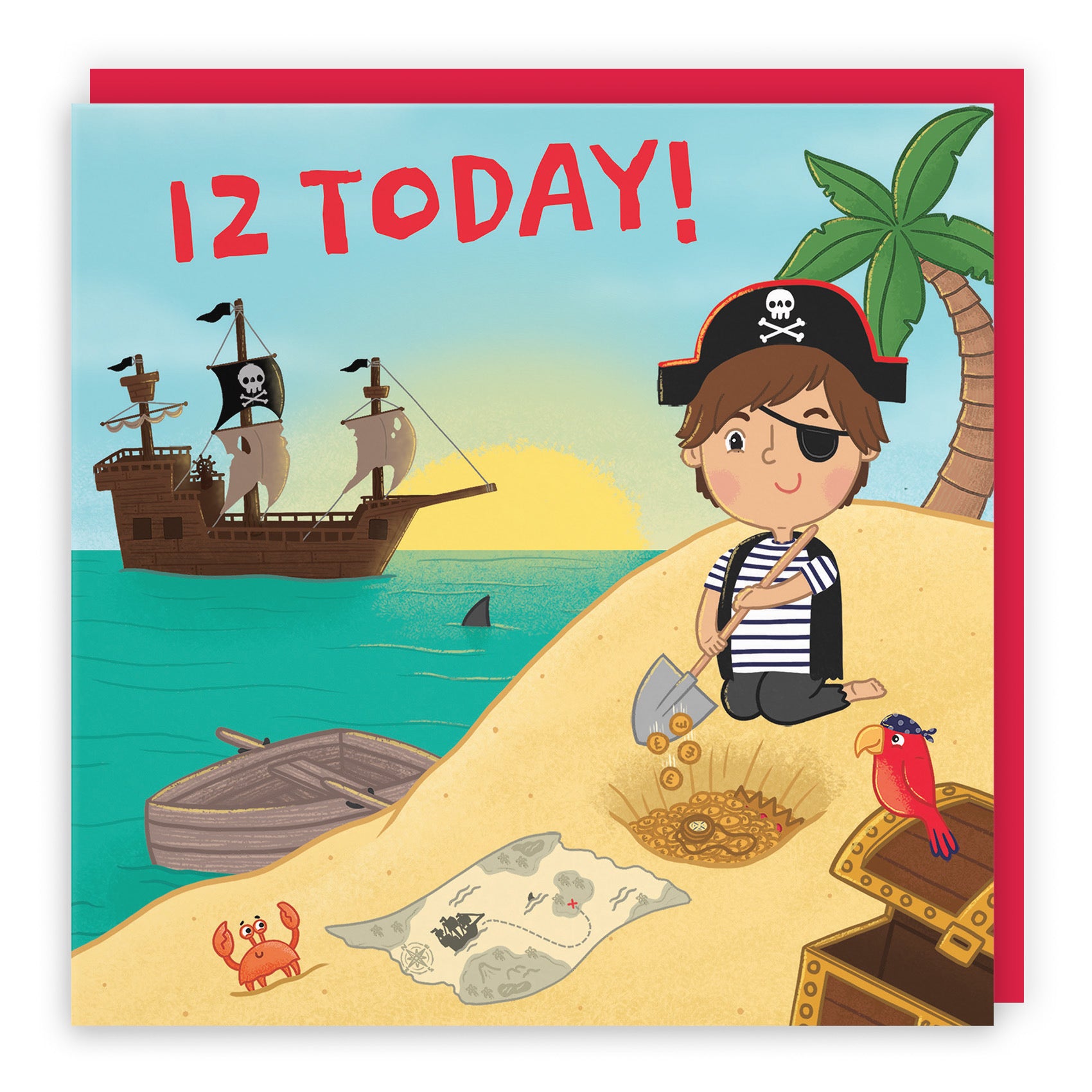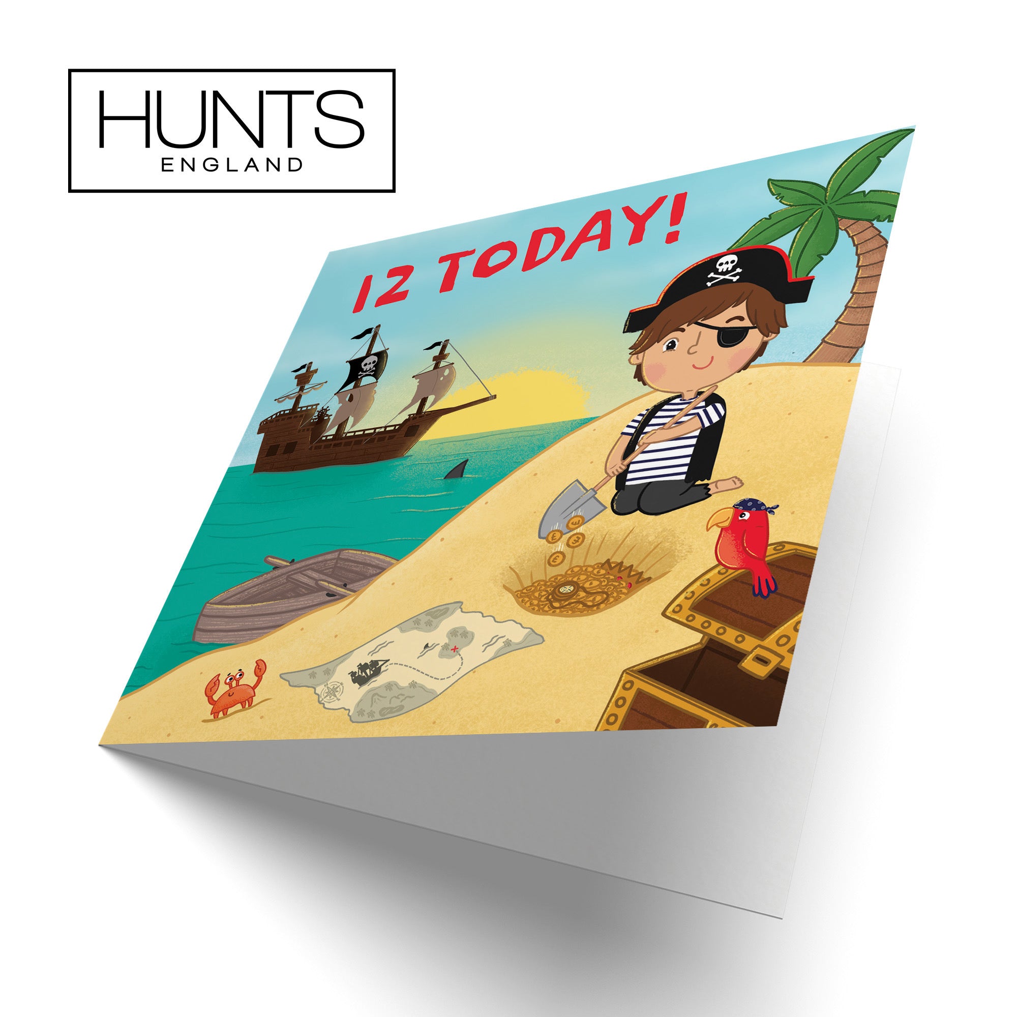 Hunts England - Boys Pirate 12th Birthday Card - Happy Birthday - 12 Today! - Treasure Map - Age 12 - Imagination Collection.