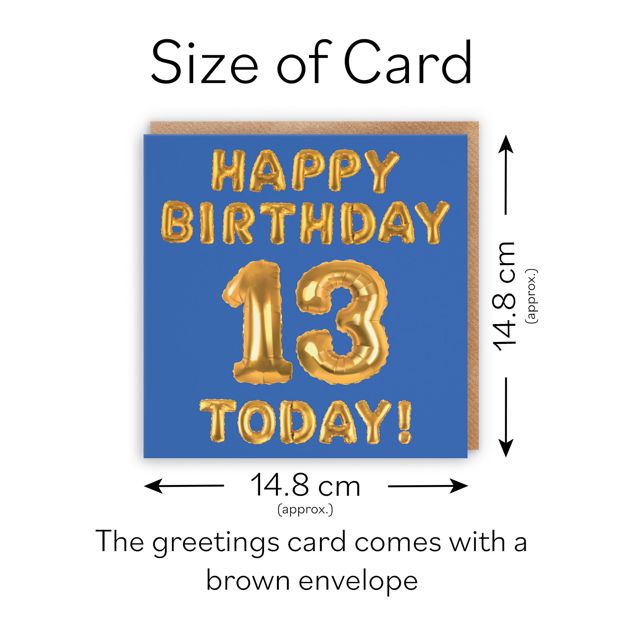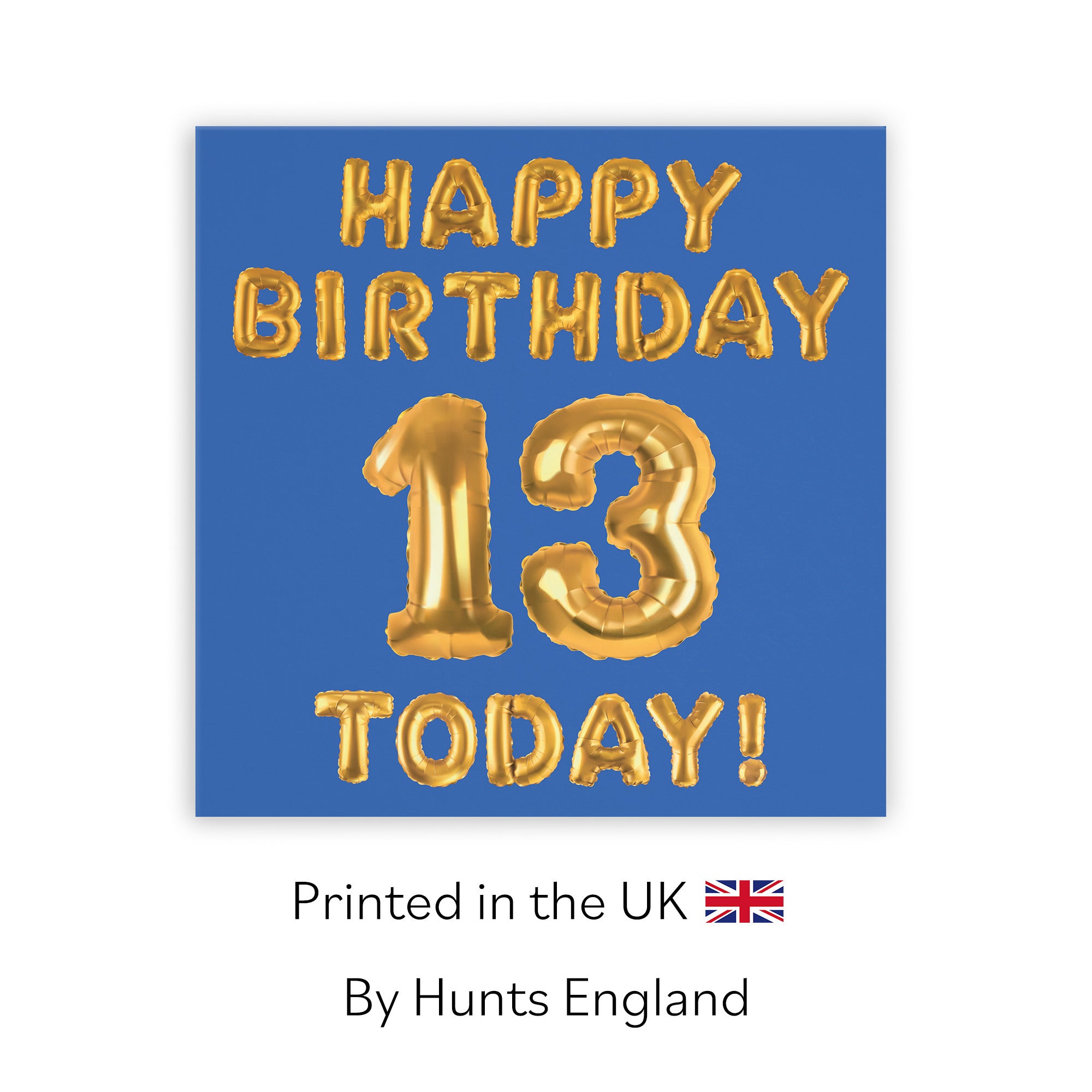 Hunts England - 13th Birthday Card - Blue - Happy Birthday - 13 - Today - Balloon Collection.