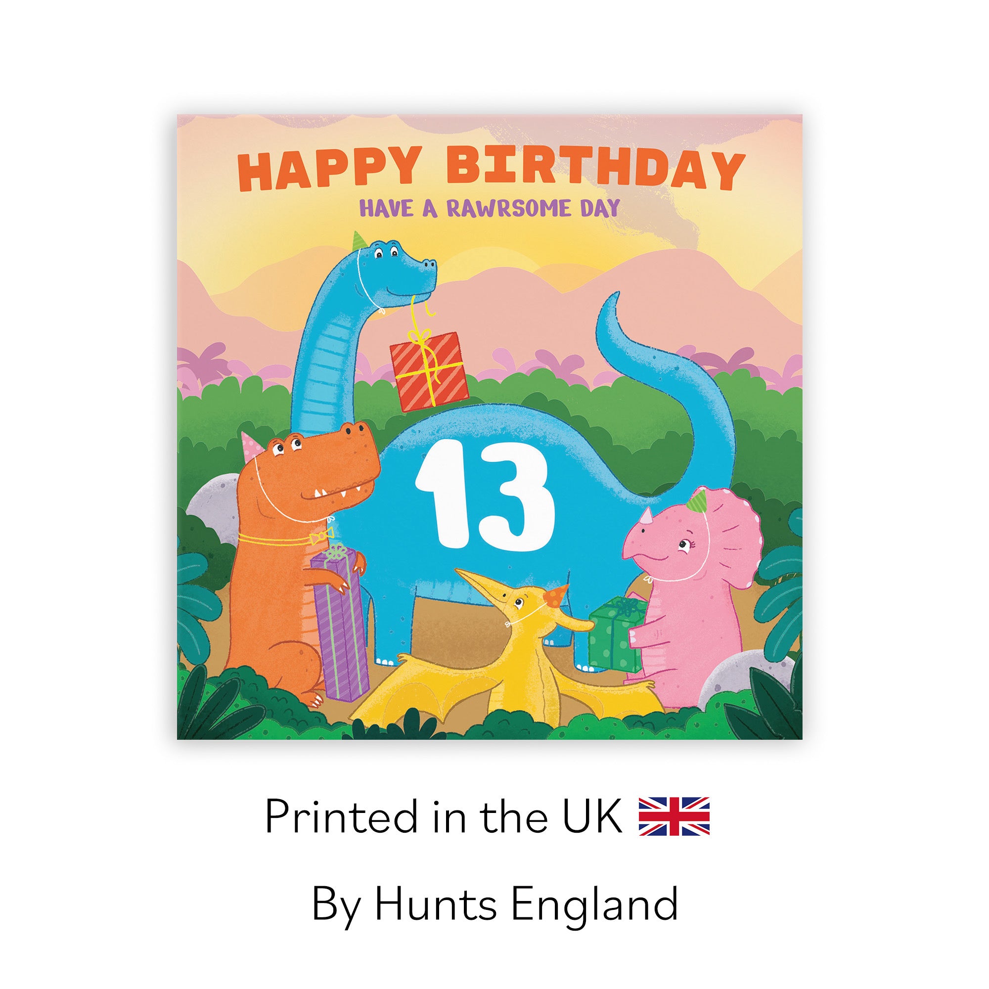 Hunts England - 13th Birthday Boys / Girls Dinosaur Party Card - Happy Birthday - Have A Rawrsome Day - 13 - Age 13 - Imagination Collection.
