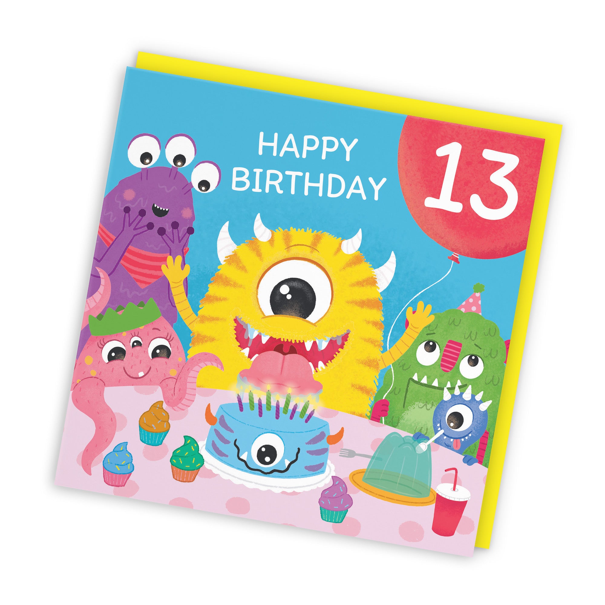 Hunts England - 13th Birthday Boys / Girls Monsters Party Card - Happy Birthday - 13 - Age 13 - Imagination Collection.