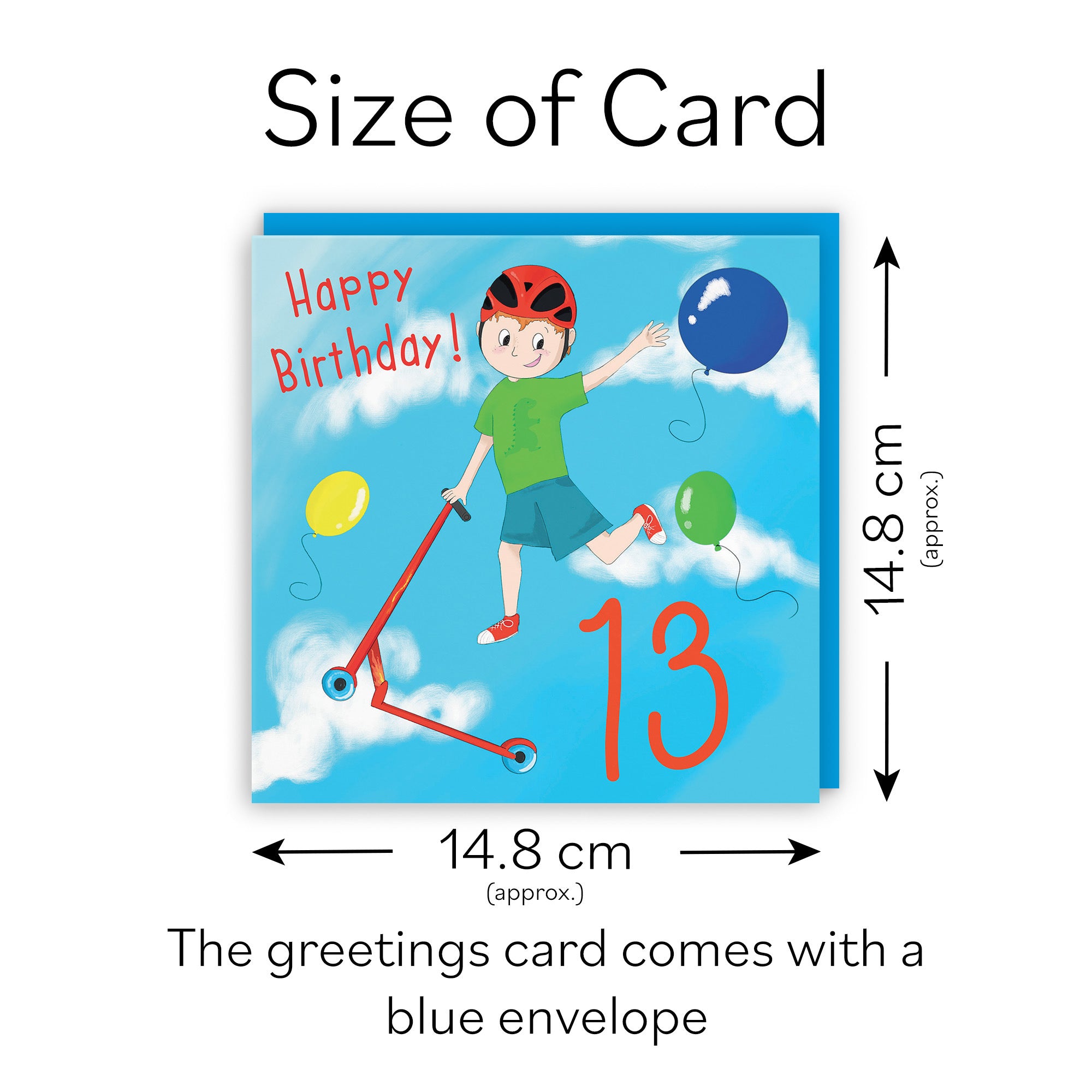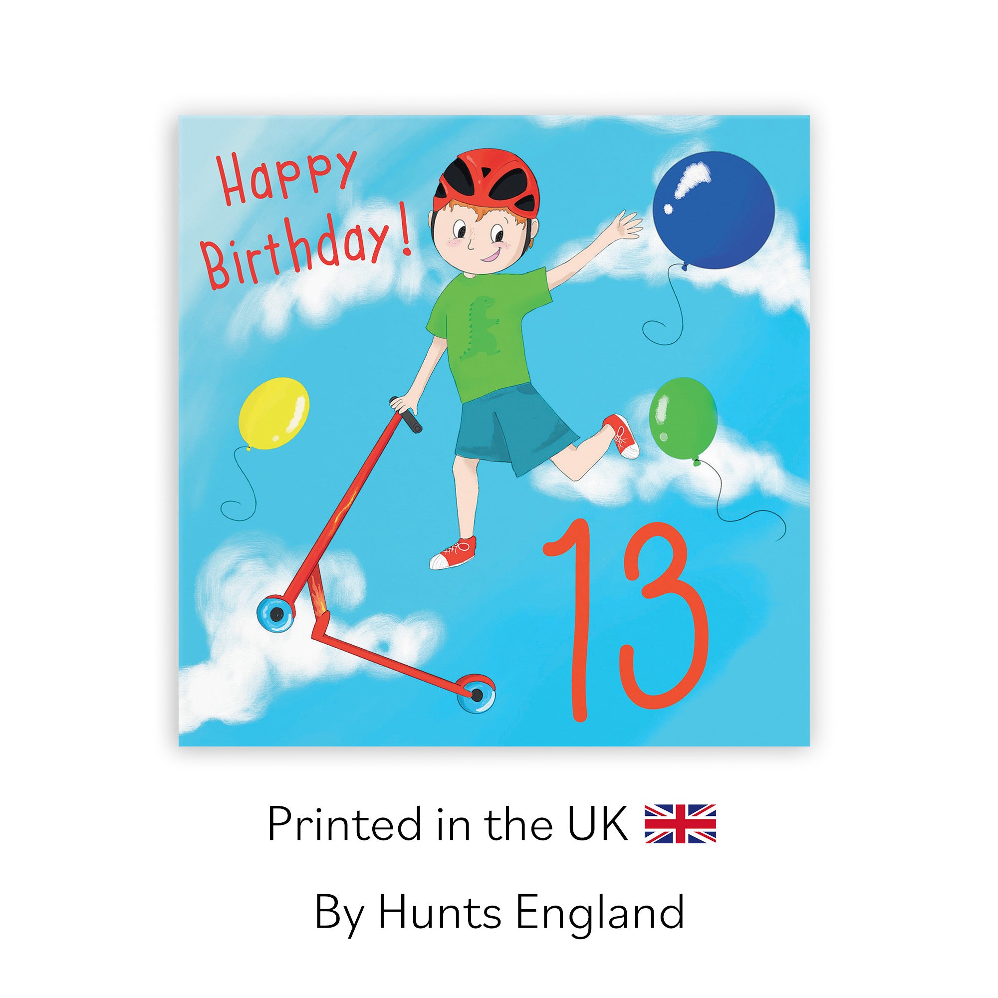 Hunts England - Boys 13th Birthday Tricks Scooter Children's Card - Happy Birthday! - 13 - Age 13 Card - Adventurers Collection.