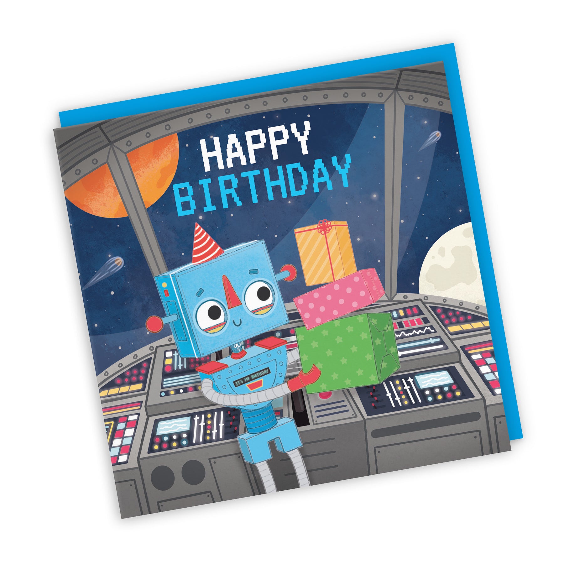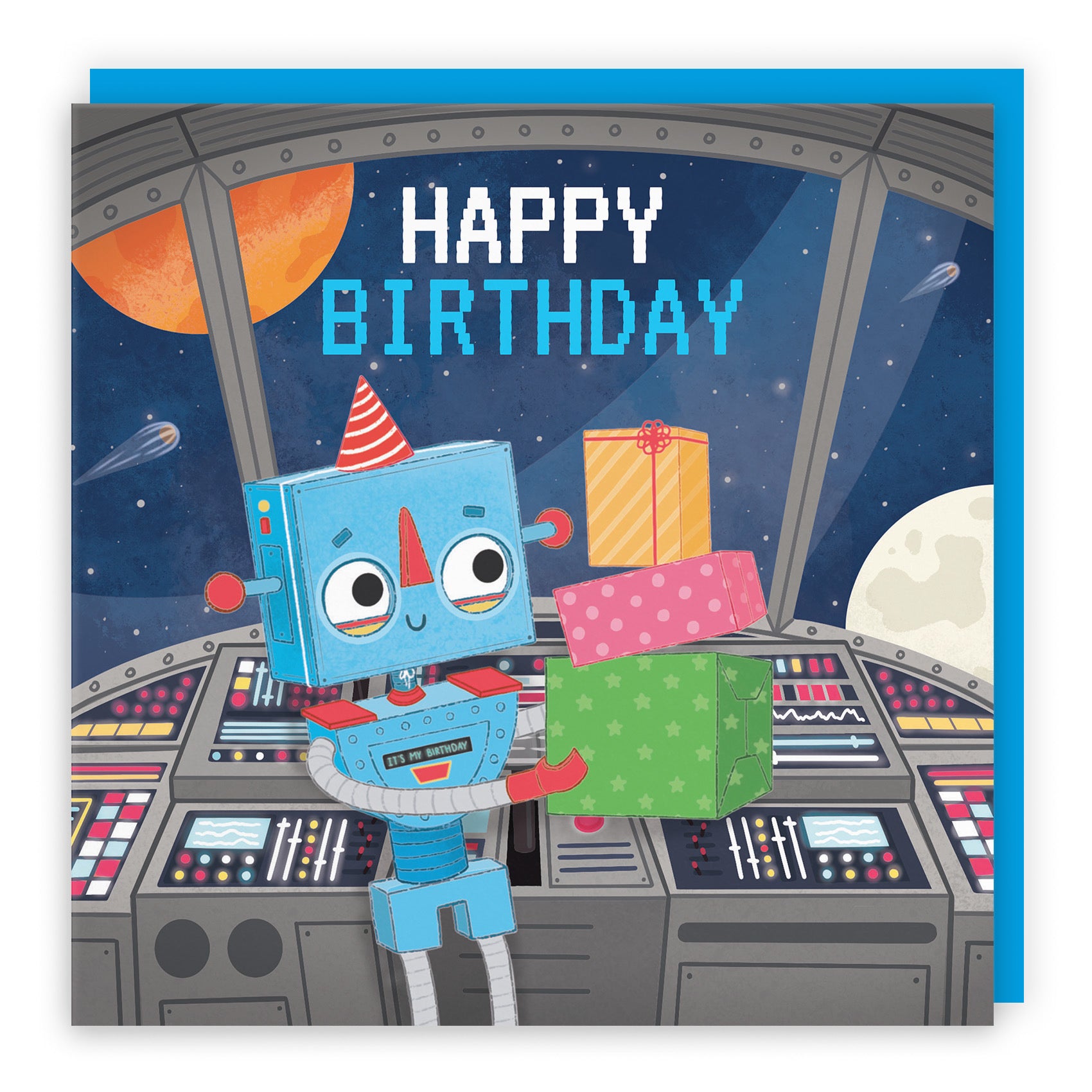 Hunts England - Space Robot Boys Birthday Card - Happy Birthday - Robot On A Spaceship - Children's / Kids Card - Imagination Collection.