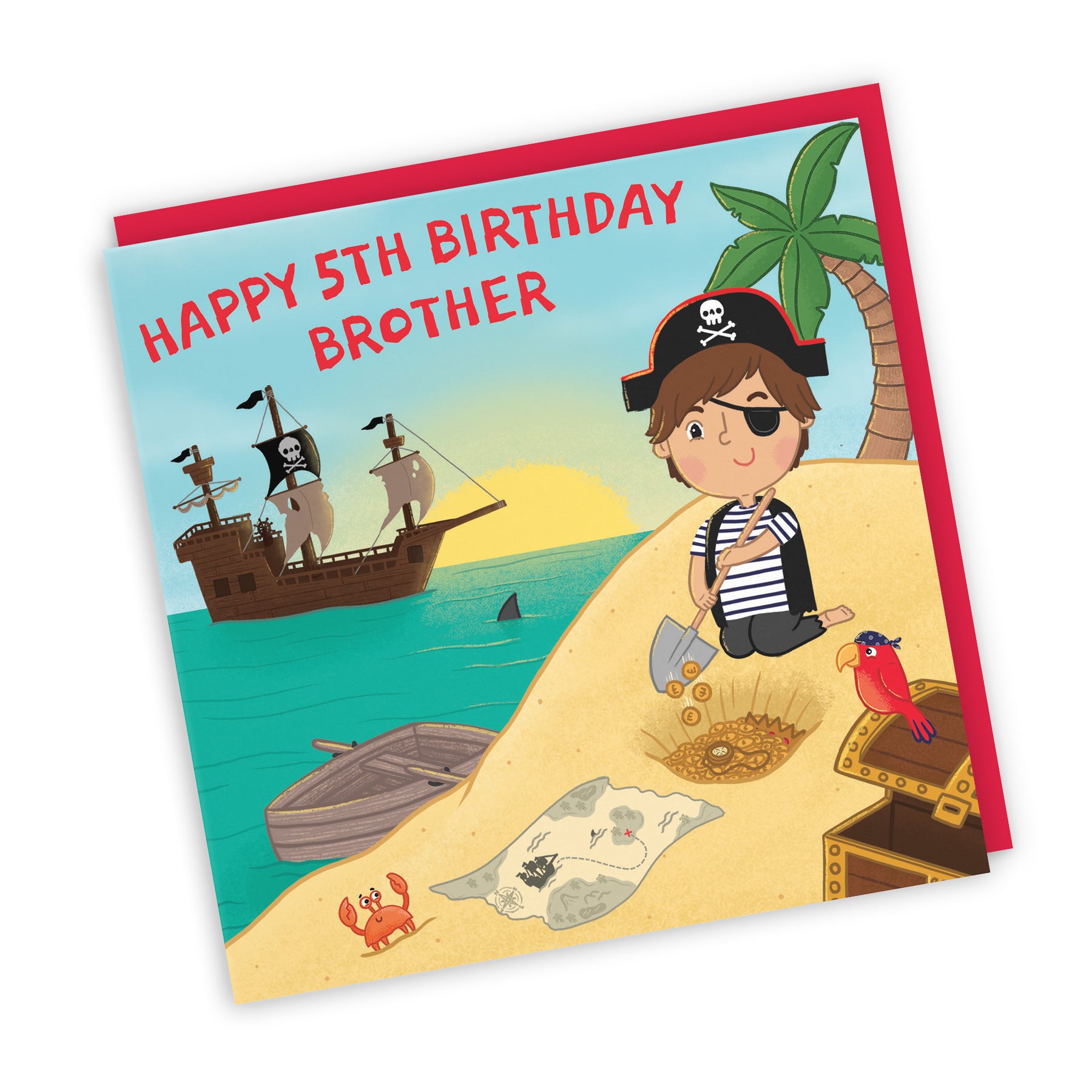 Hunts England - Brother 5th Pirate Birthday Card - Happy 5th Birthday - Brother - Treasure Map - Imagination Collection.