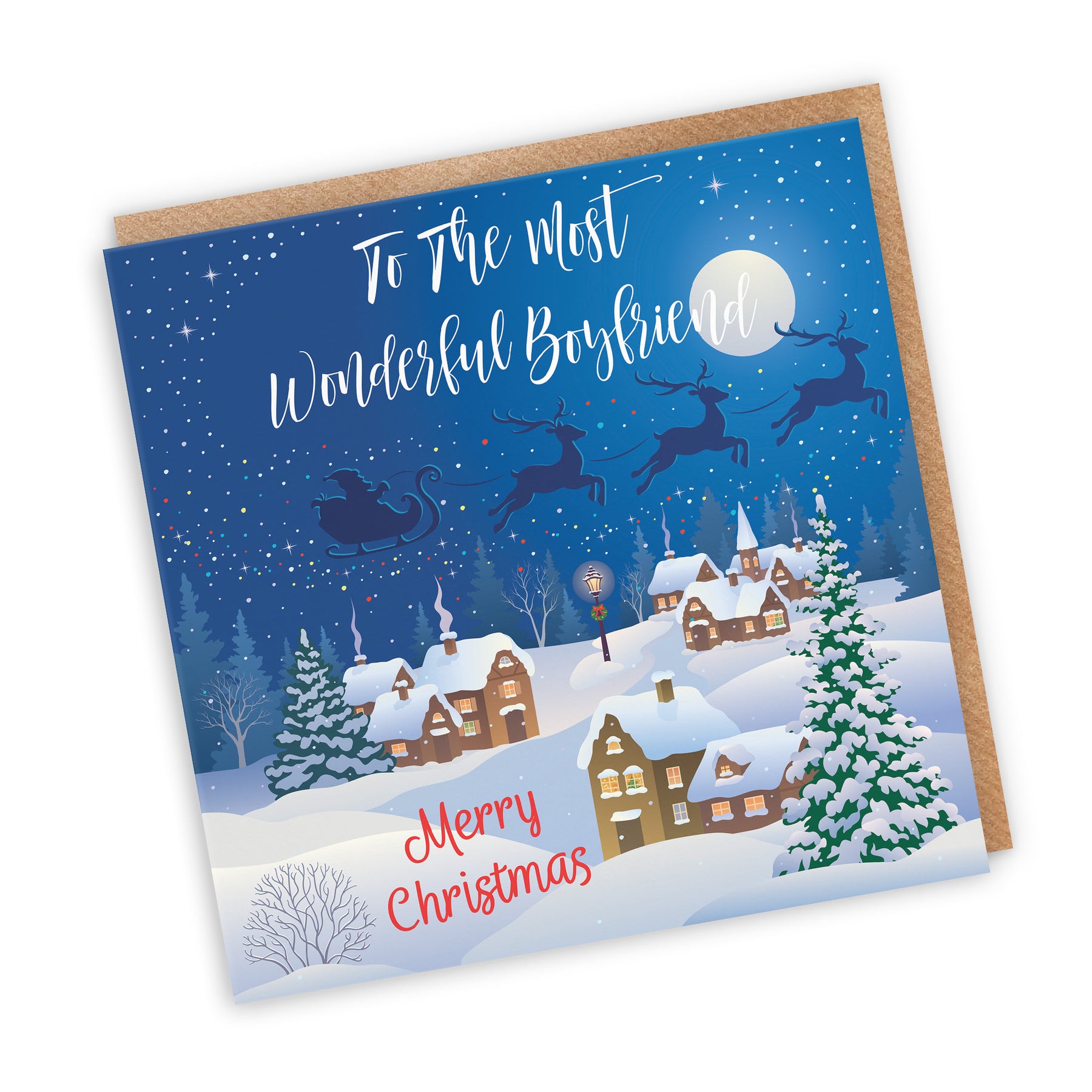 Hunts England - Boyfriend Christmas Card - To The Most Wonderful Boyfriend - Merry Christmas - Winter Wonderland Collection.