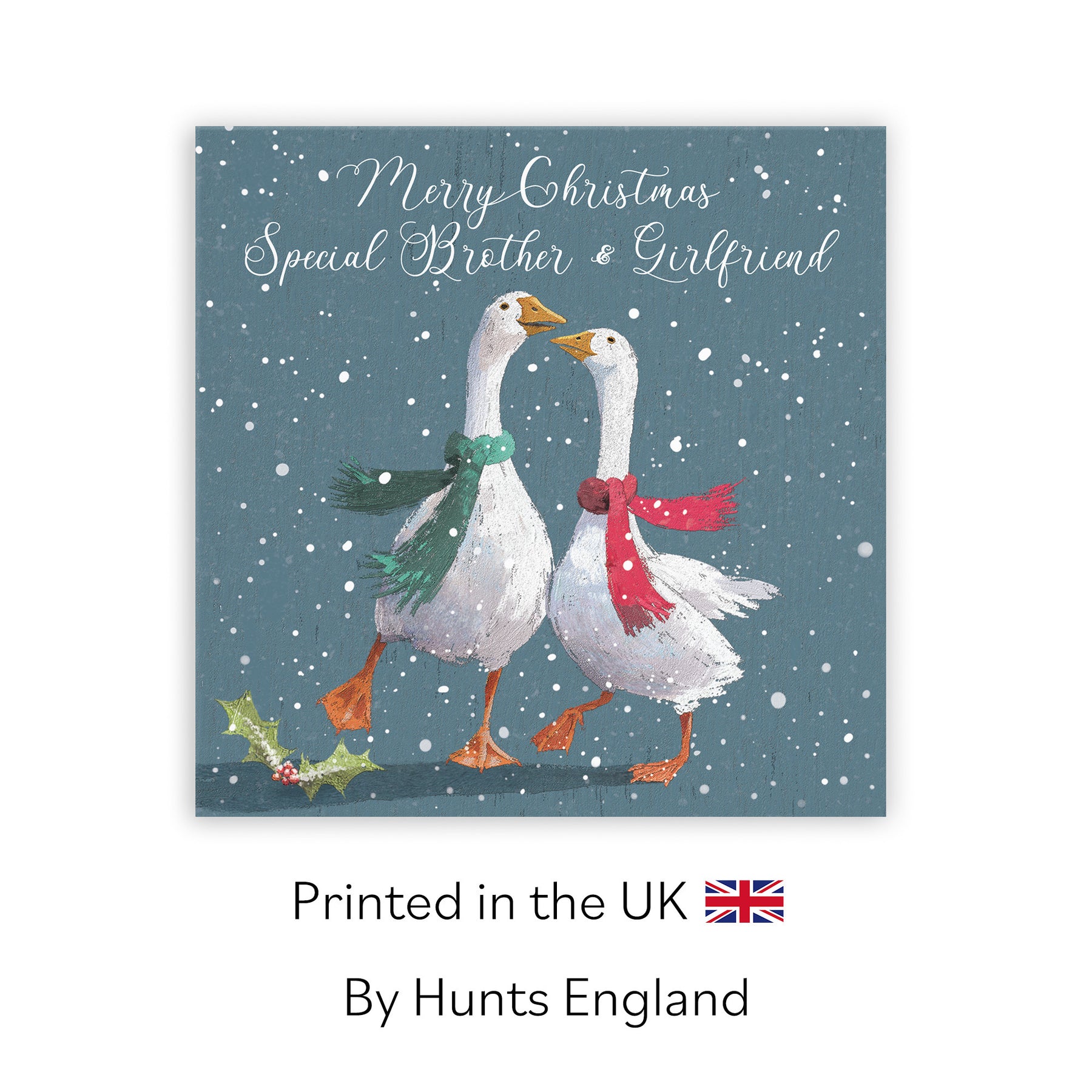 Hunts England - Brother And Girlfriend Artistic Christmas Card - Merry Christmas - Special Brother & Girlfriend - Festive Geese - Milo's Gallery Collection.