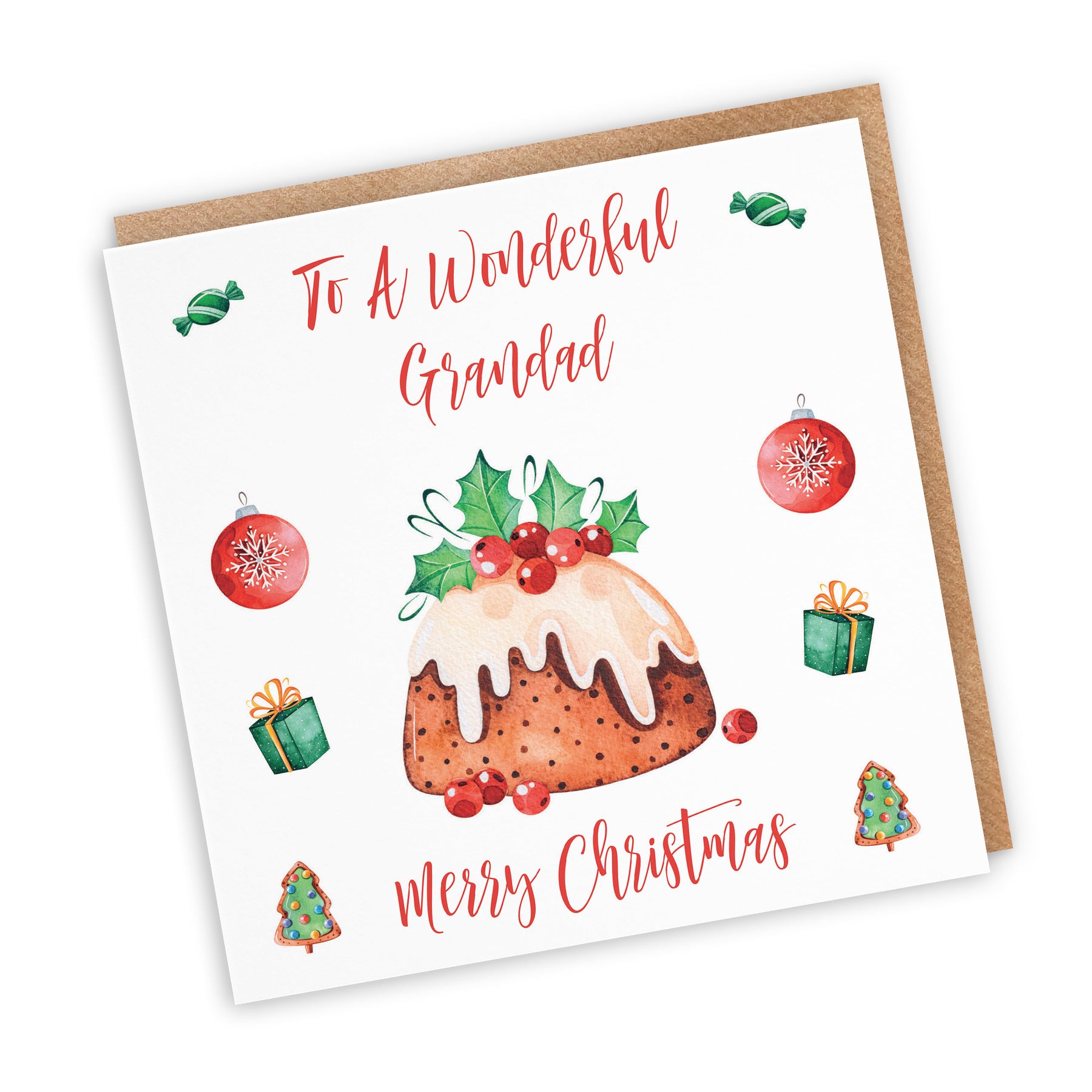 Hunts England - Grandad Christmas Card - To A Wonderful Grandad - Christmas Pudding Collection.