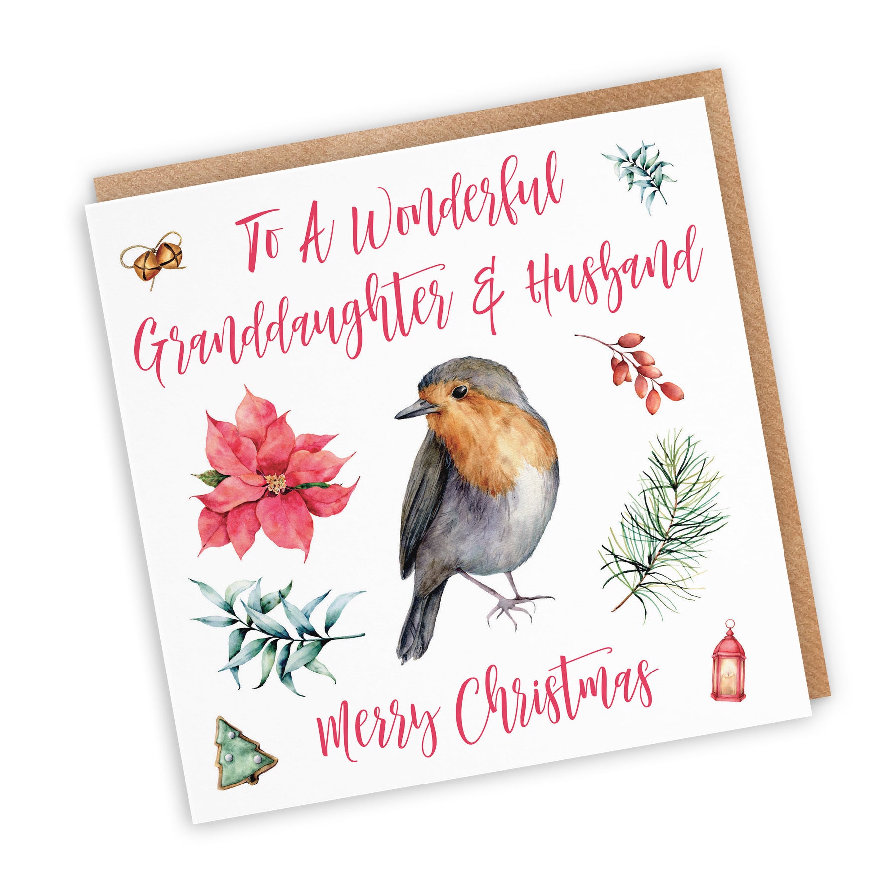 Hunts England - Granddaughter And Husband Christmas Card - To A Wonderful Granddaughter & Husband - Merry Christmas - Festive Collection.