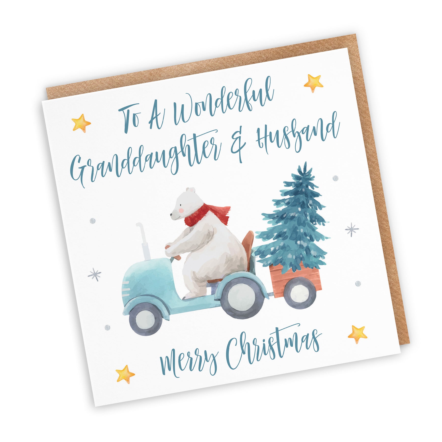 Hunts England - Granddaughter And Husband Christmas Card - To A Wonderful Granddaughter & Husband - Merry Christmas - Polar Bear Collection.