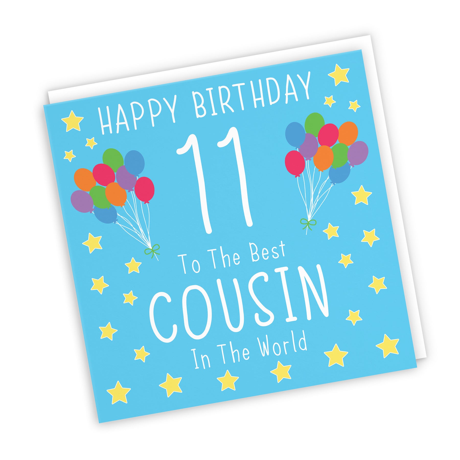 Hunts England - Cousin 11th Male Blue Birthday Card - Happy Birthday - 11 - To The Best Cousin In The World - Iconic Collection.