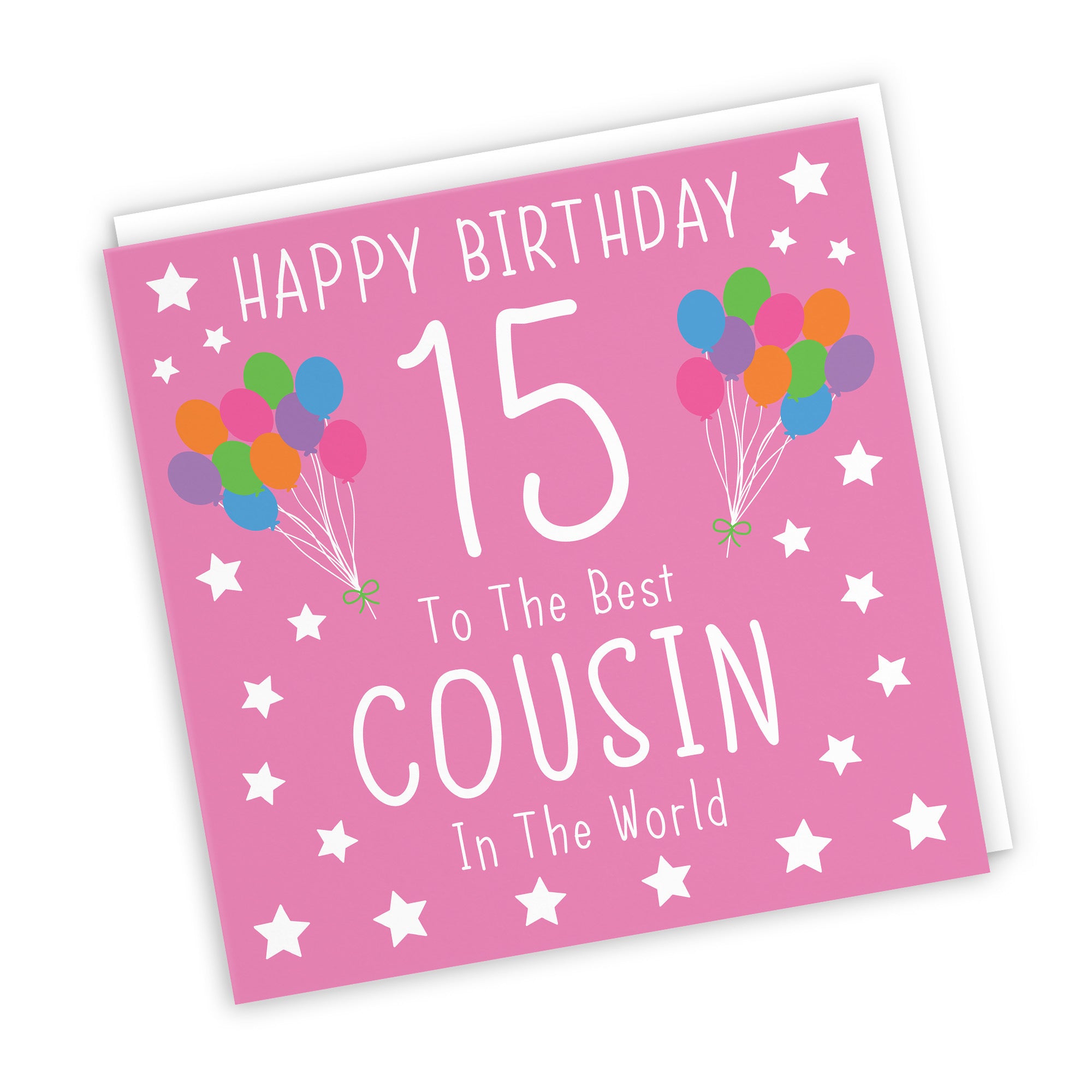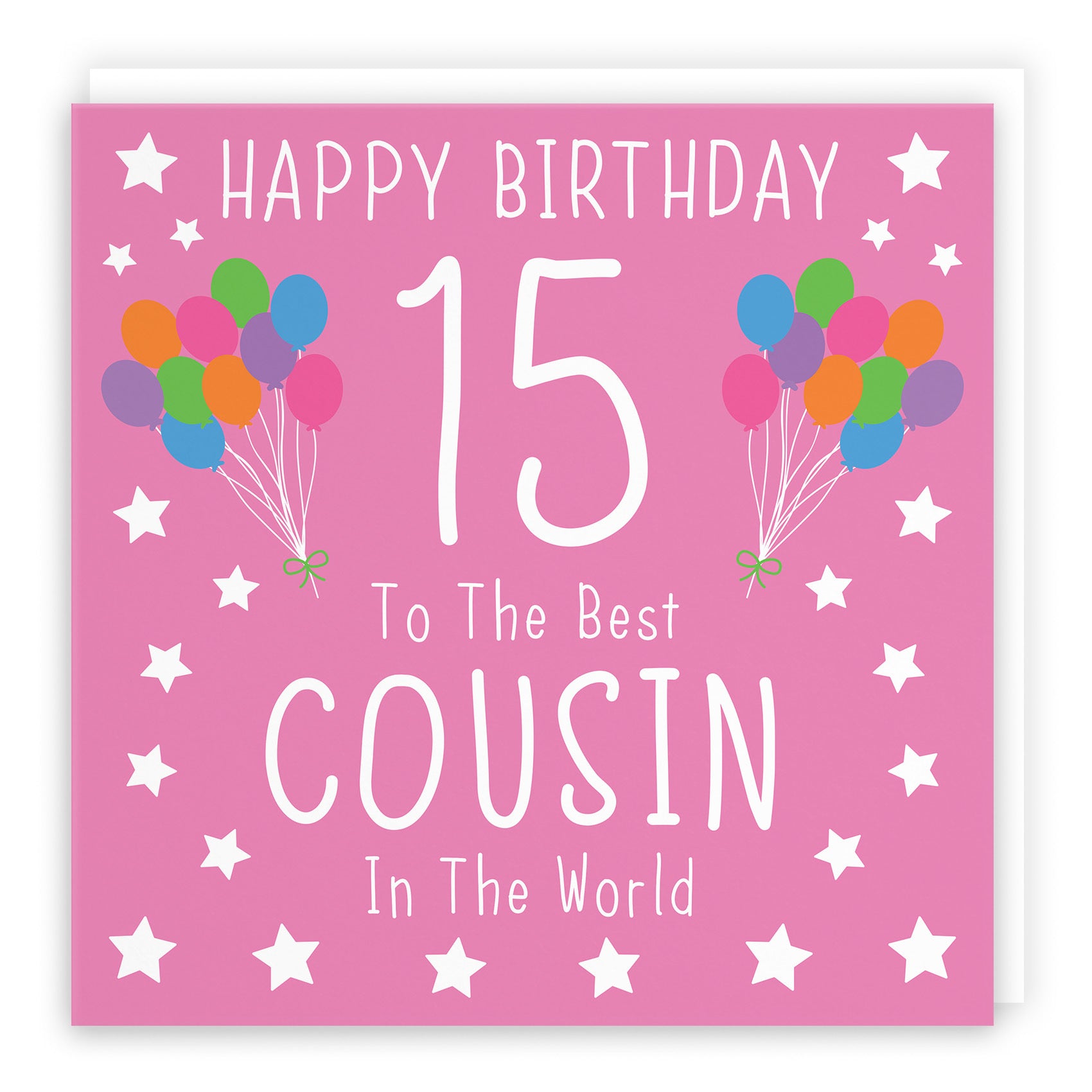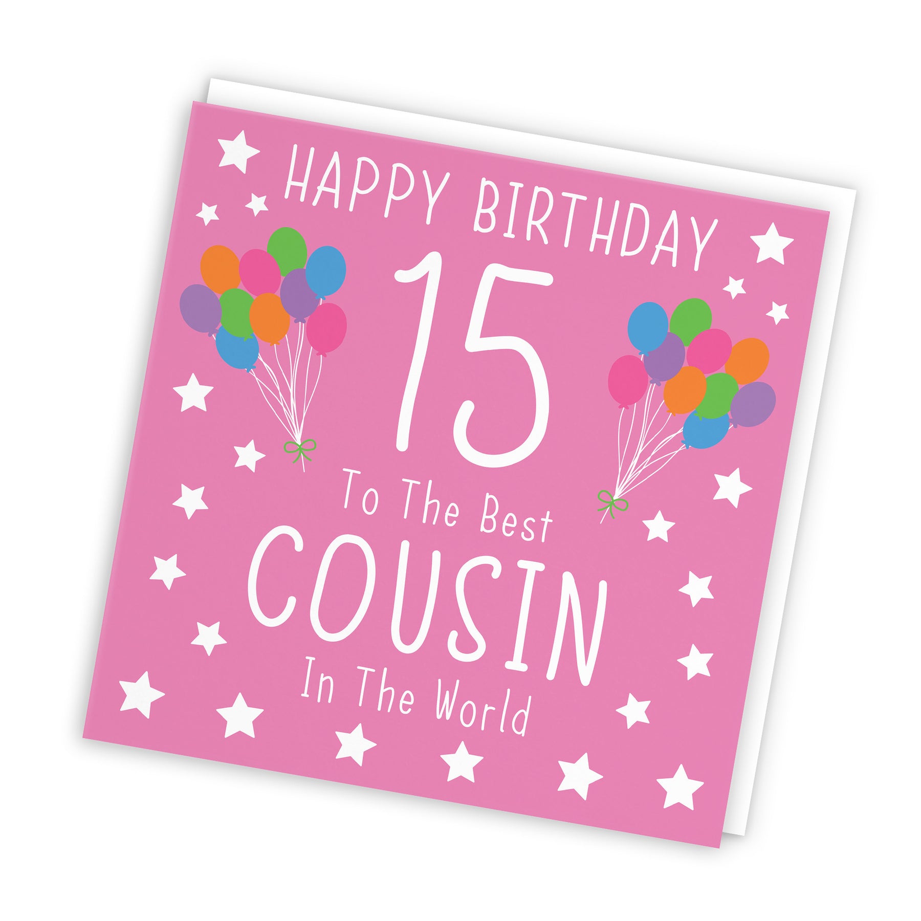 Hunts England - Cousin 15th Female Pink Birthday Card - Happy Birthday - 15 - To The Best Cousin In The World - Iconic Collection.