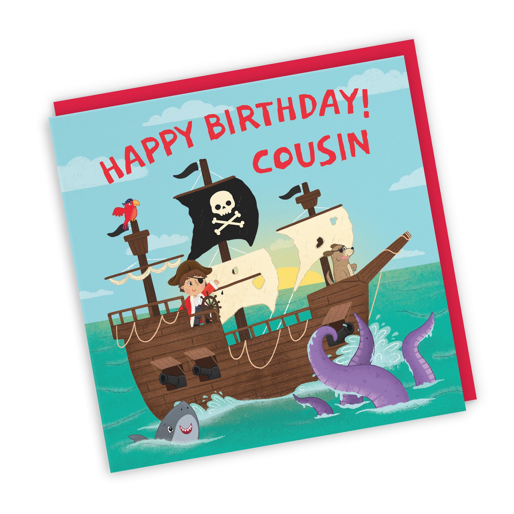 Cousin Male Pirate Ship Kids Birthday Card Imagination