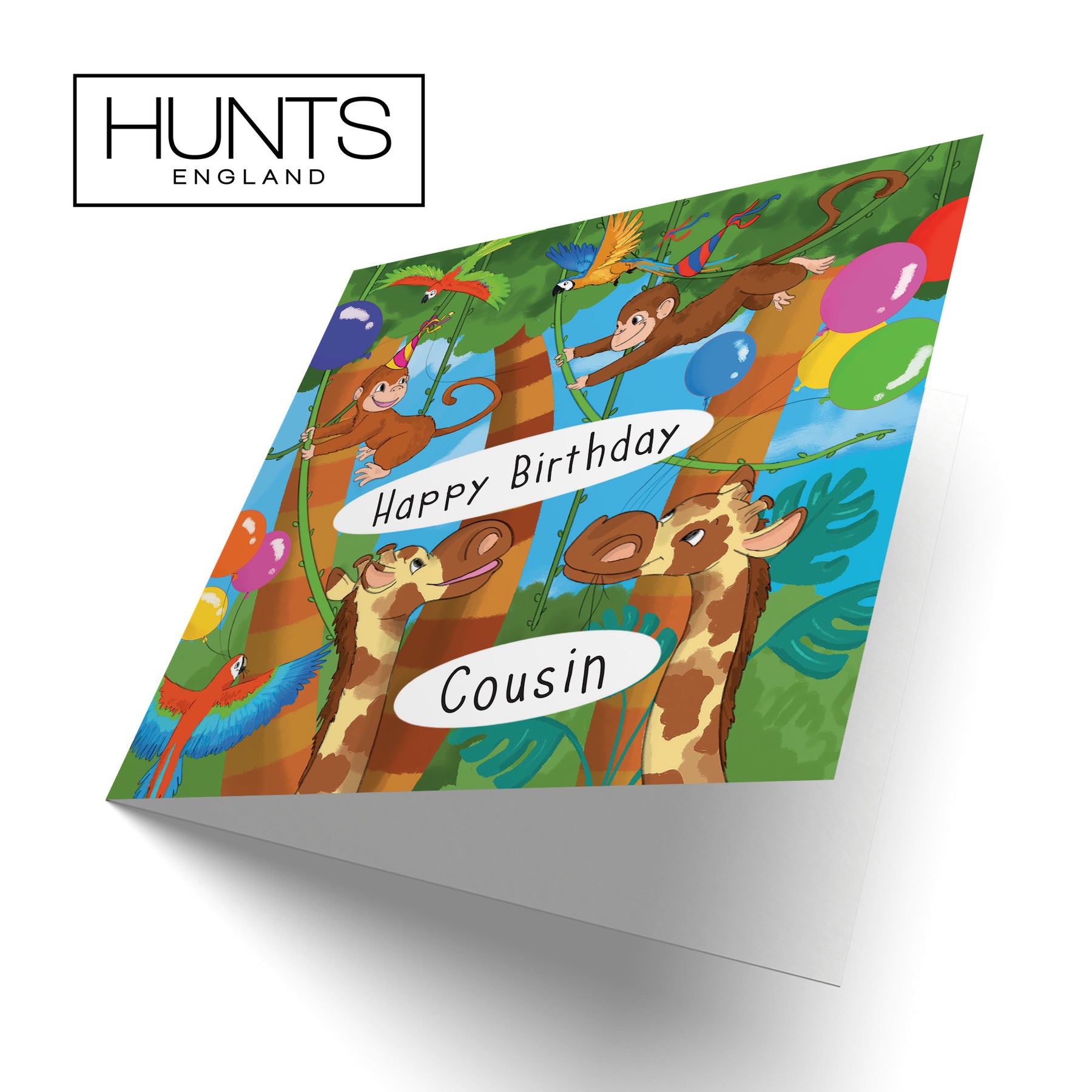 Hunts England - Cousin Monkey Birthday Card - Happy Birthday - Cousin - Boys / Girls - Monkeys, Giraffes & Parrots Kids Card - Jungle Collection.
