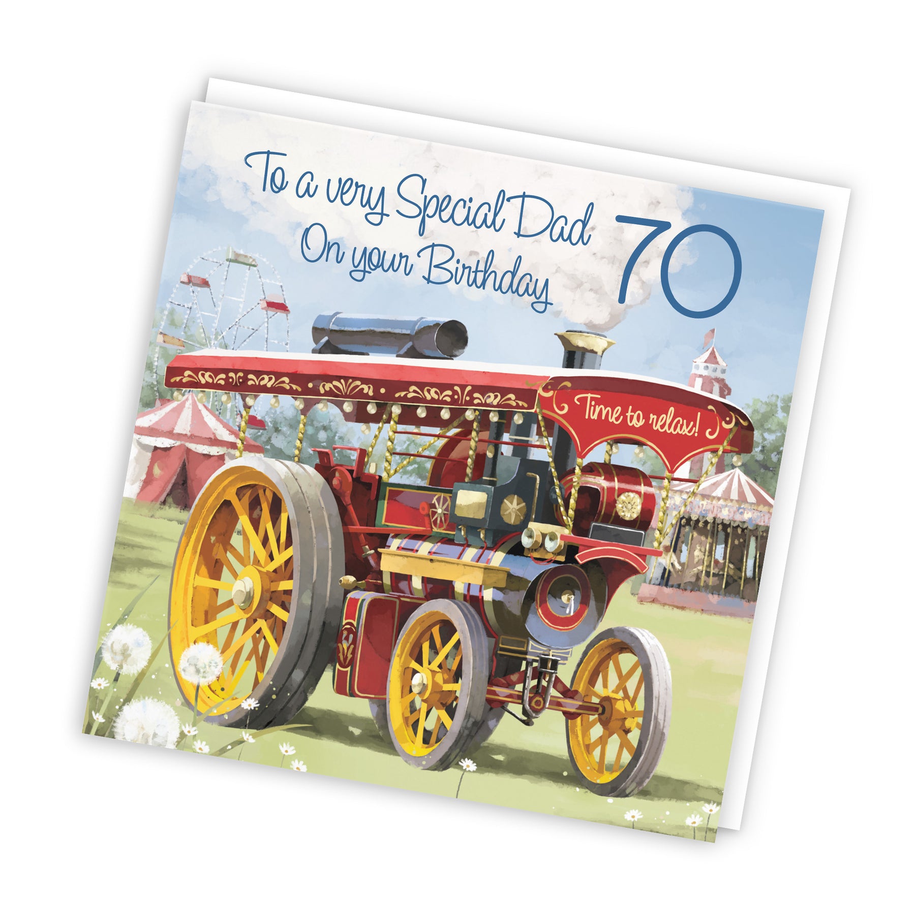 Hunts England - 70th Dad Traction Engine Birthday Card - Age 70 Card For Dad - Steam Tractor - Milo's Gallery - Age Seventy Birthday - 70 Year Old.