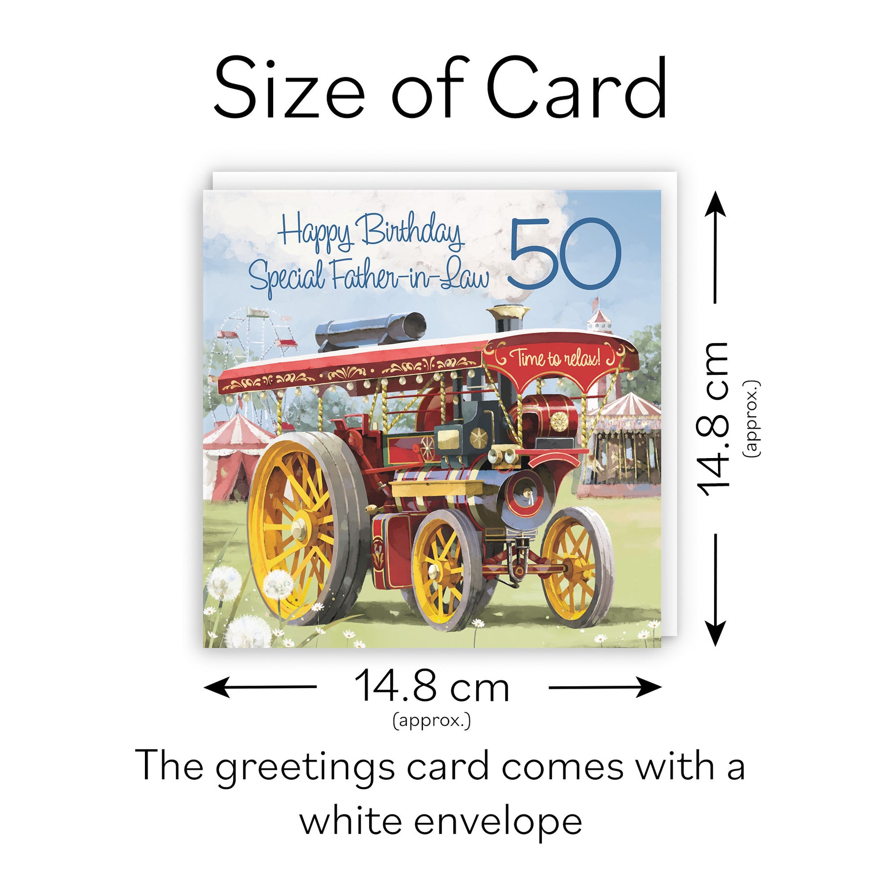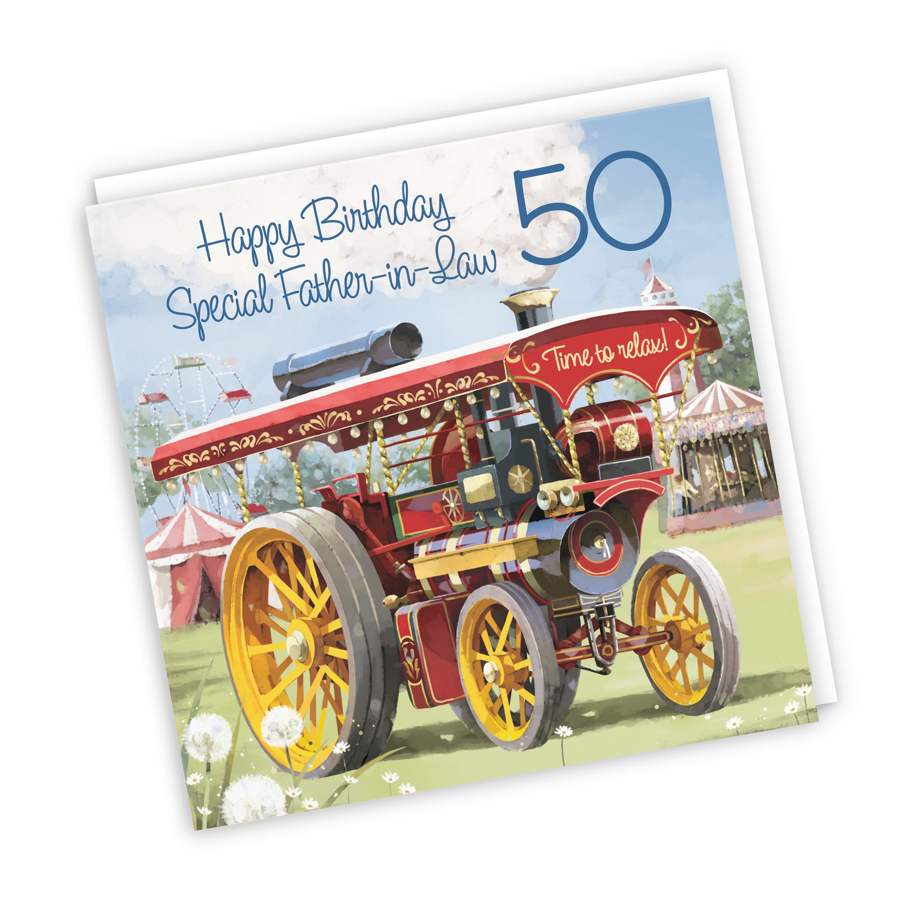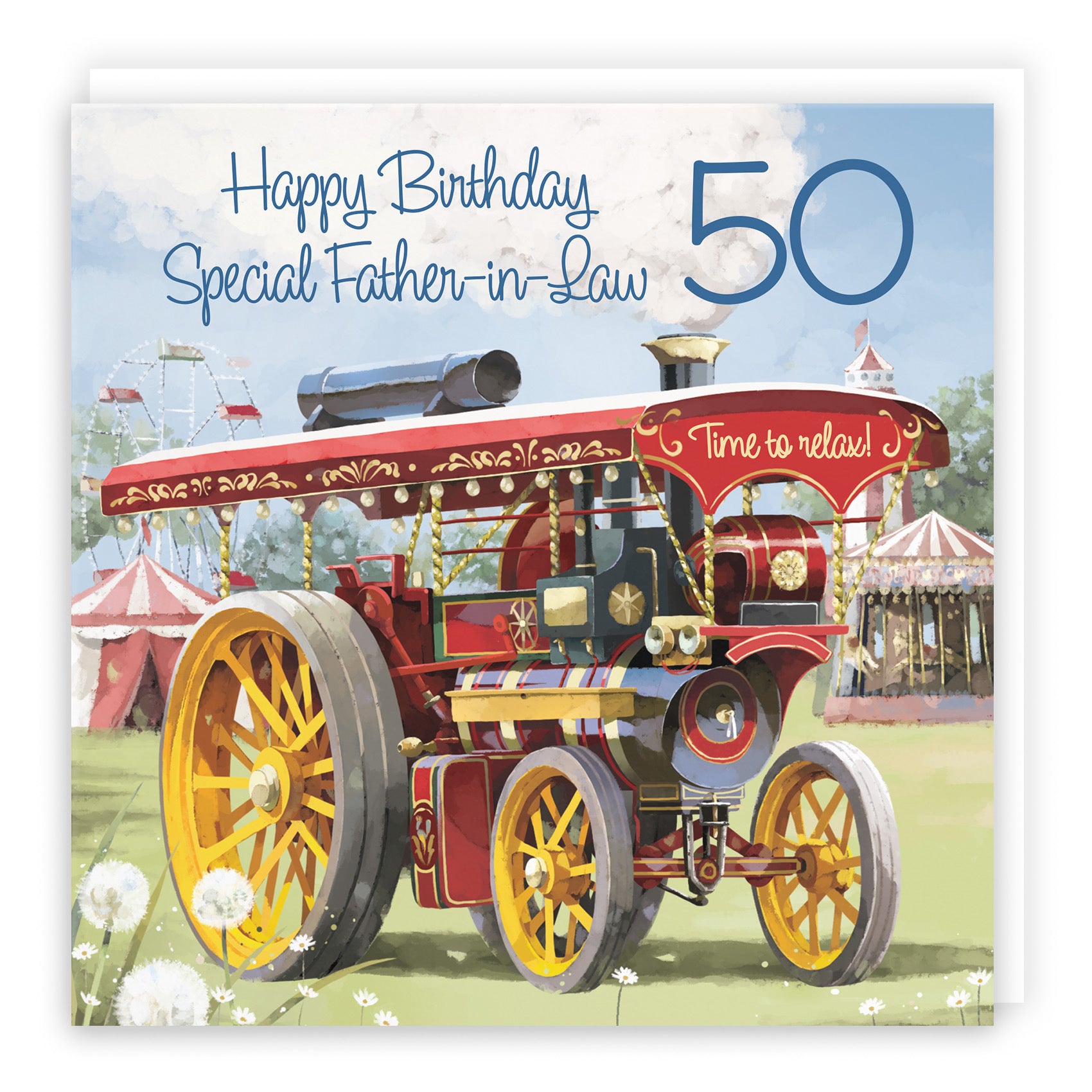 Hunts England - 50th Father-in-Law Traction Engine Birthday Card - Age 50 Card For Father-in-Law - Steam Tractor - Milo's Gallery - Age Fifty Birthday - Father In Law.