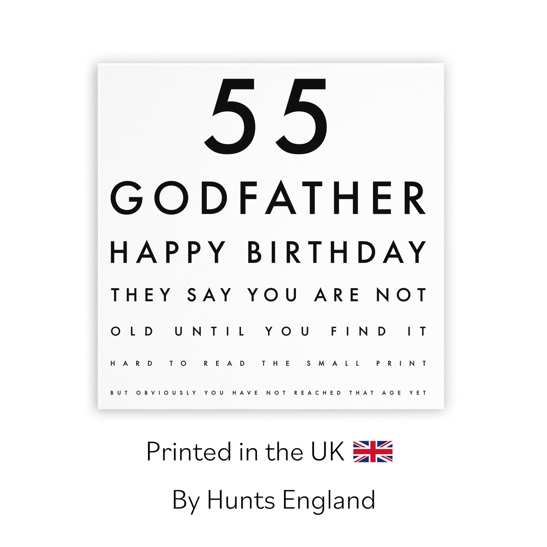 Hunts England - Godfather 55th Humorous Birthday Card - 55 Godfather - Happy Birthday - They Say You Are Not Old Until You Find It Hard To Read The Small Print... - Letters Collection.