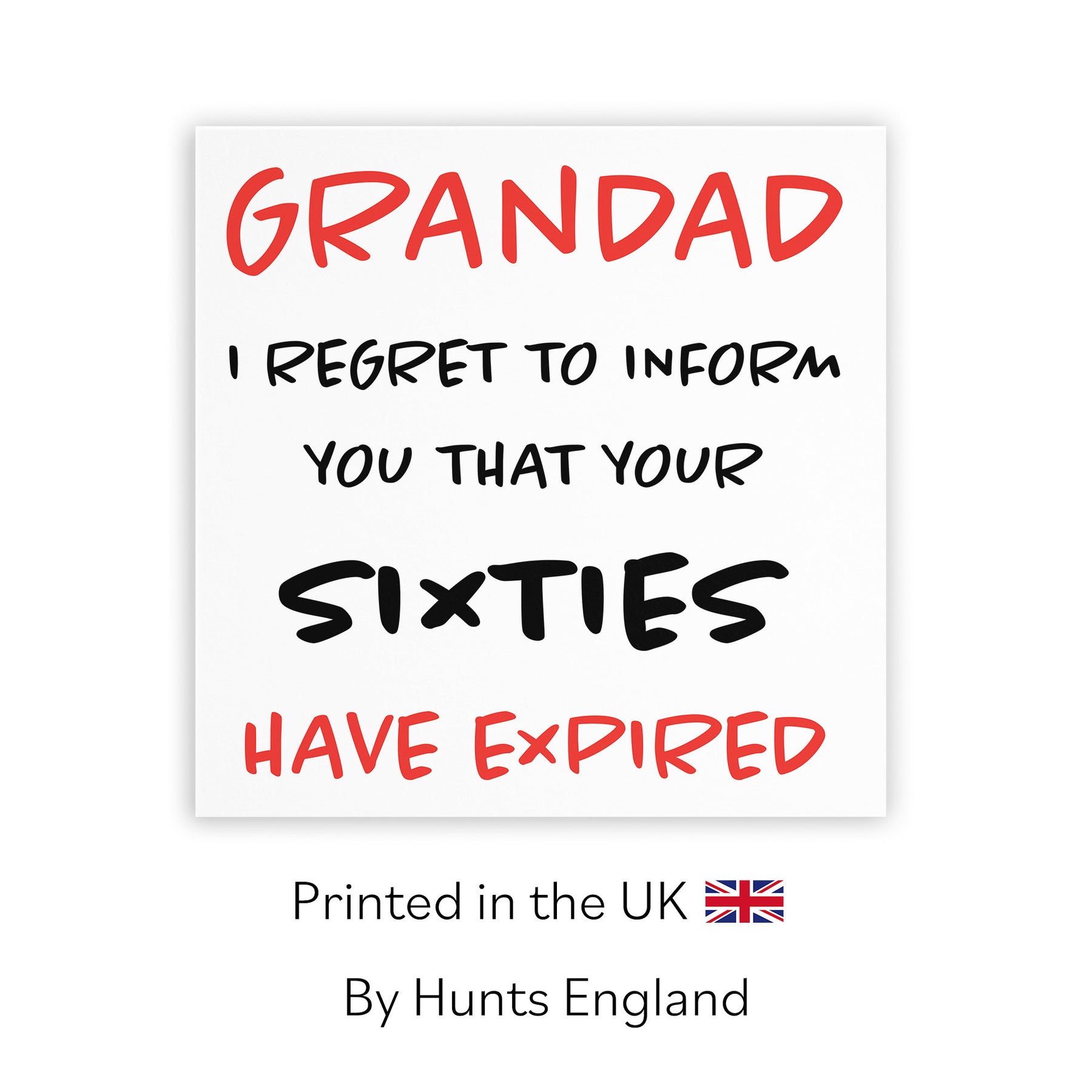 Hunts England - Grandad 70th Humorous Birthday Card - Grandad - I Regret To Inform You That Your Sixties Have Expired - Retro Collection.