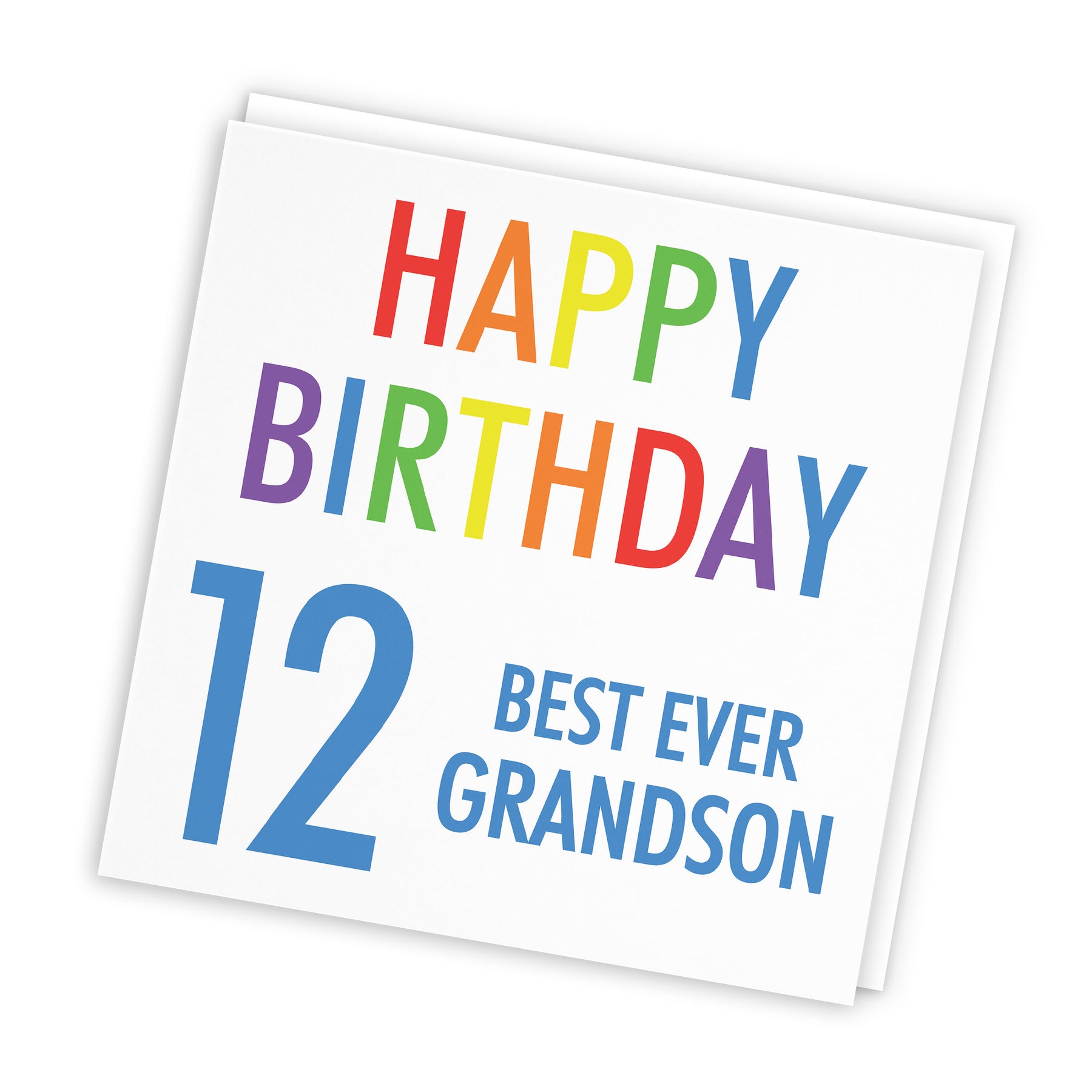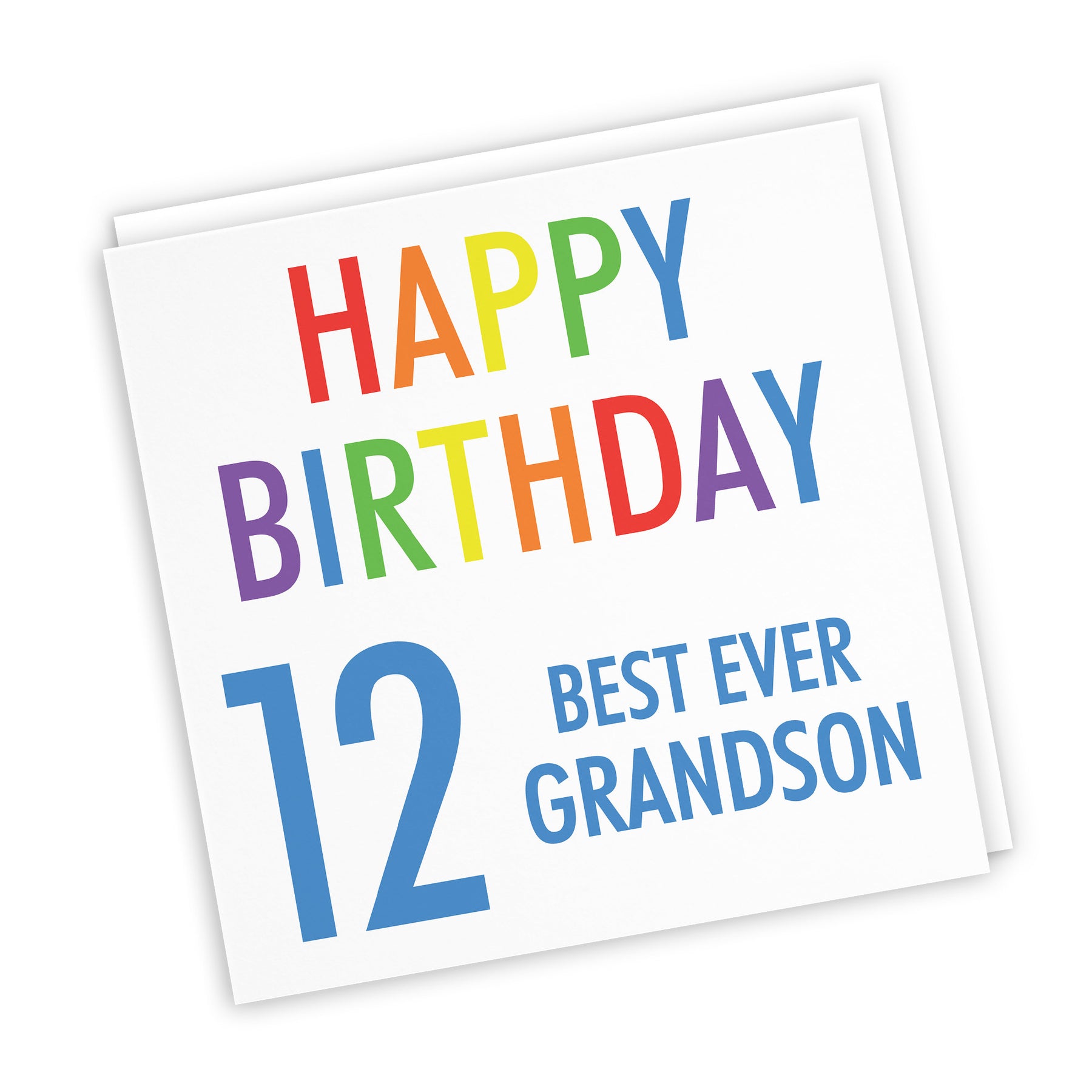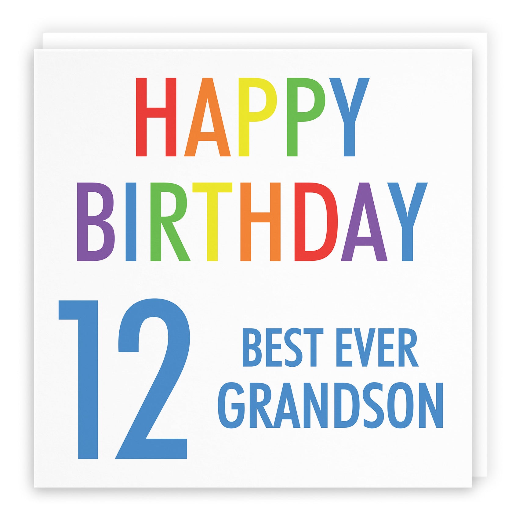 Hunts England - Grandson 12th Birthday Card - 'Happy Birthday' - 'Best Ever Grandson' - Colourful Collection.