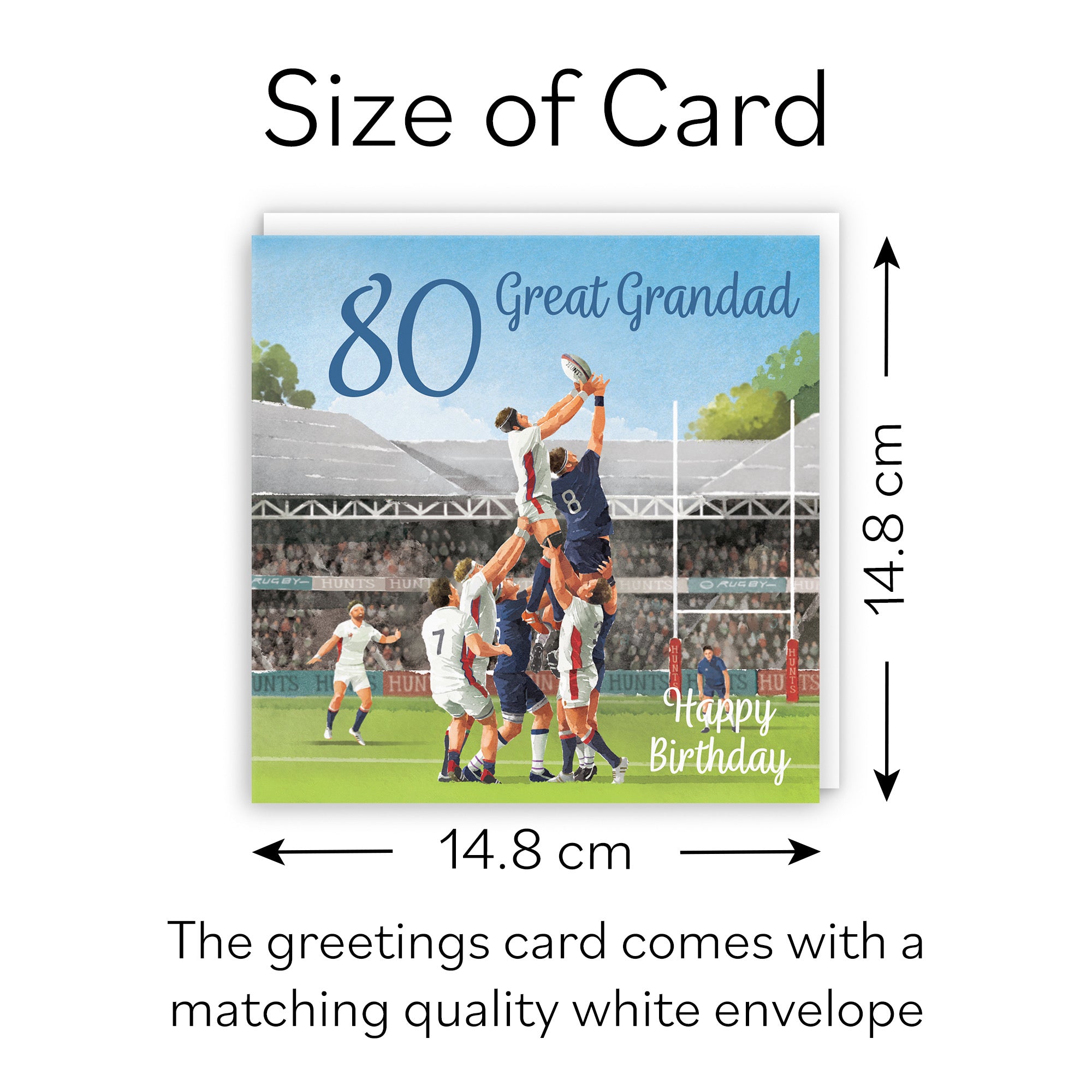 Hunts England - 80th Great Grandad Rugby Birthday Card - Milo's Gallery - Age 80 Sport Fun Birthday Card For Great Grandad - Birthday Card For 80 Year Old Rugby Fan - Age Eighty.