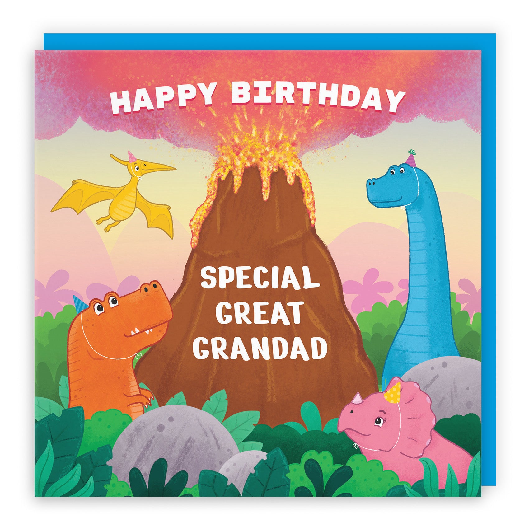 Hunts England - Great Grandad Dinosaur Birthday Card - Happy Birthday - Special Great Grandad - Dinosaurs & Volcano - Imagination Collection.