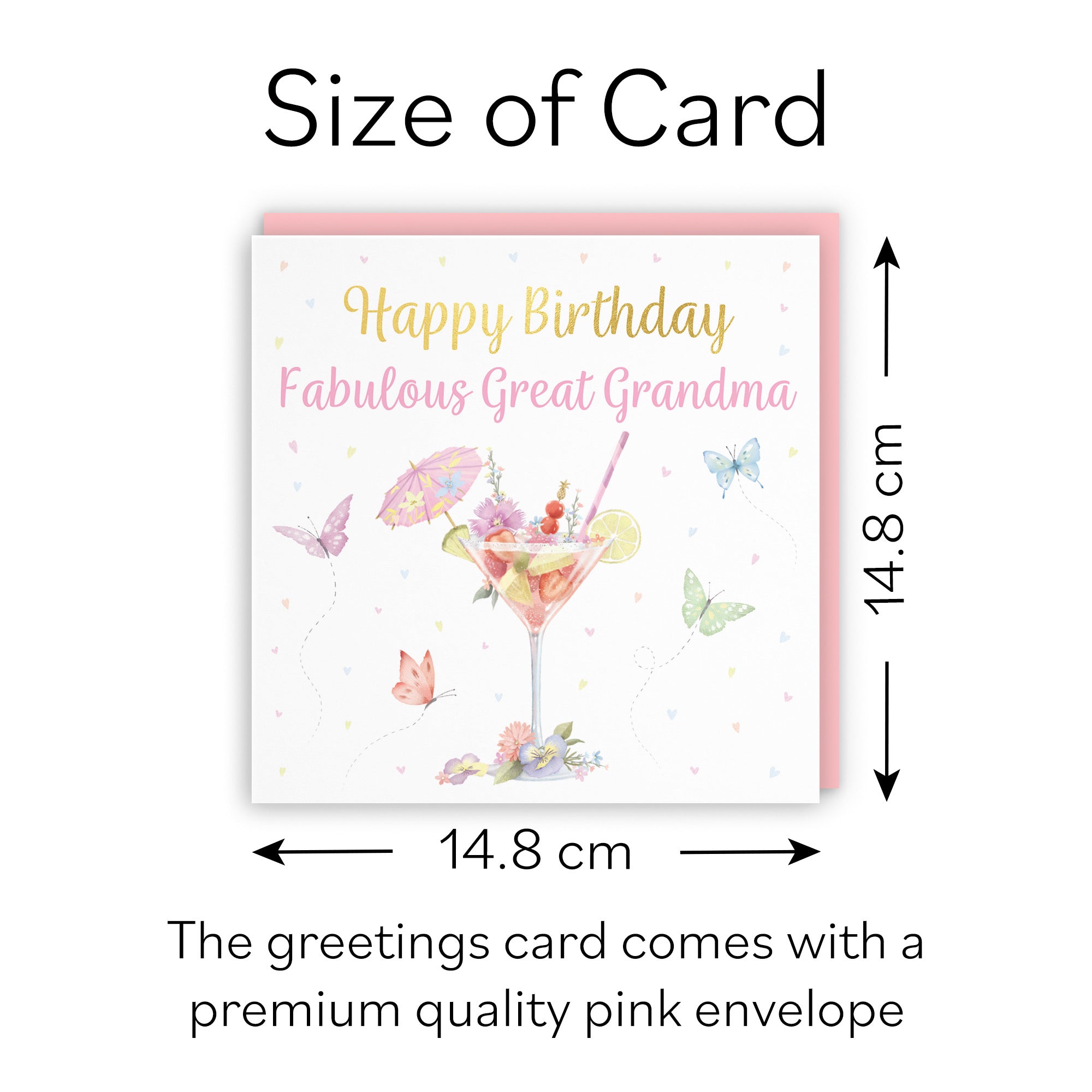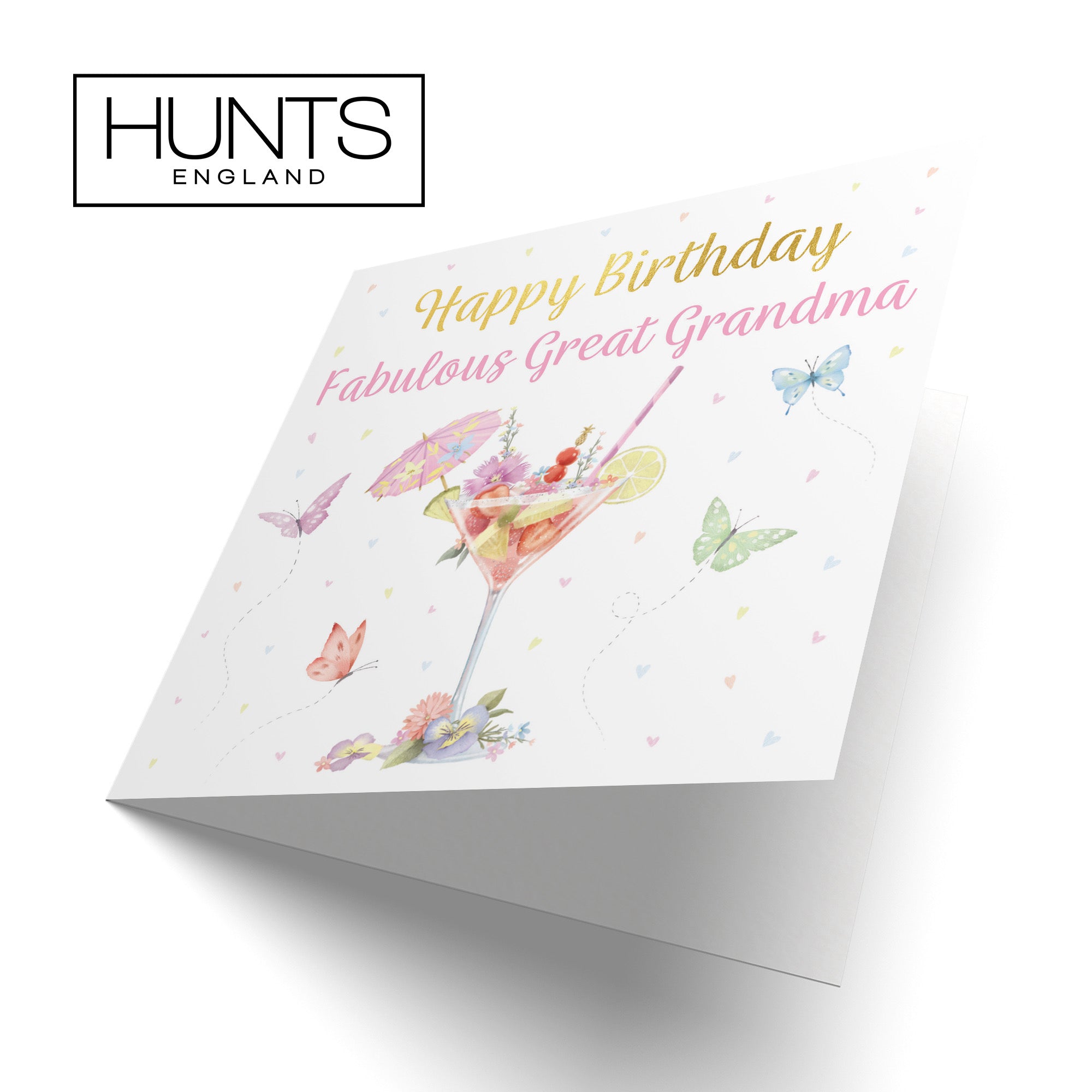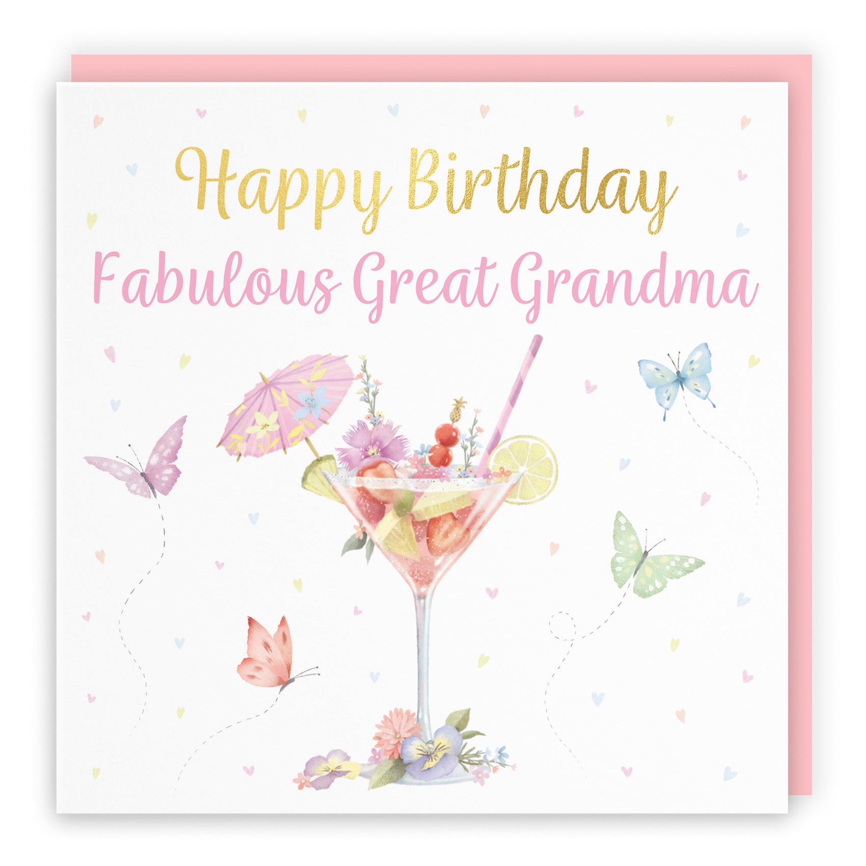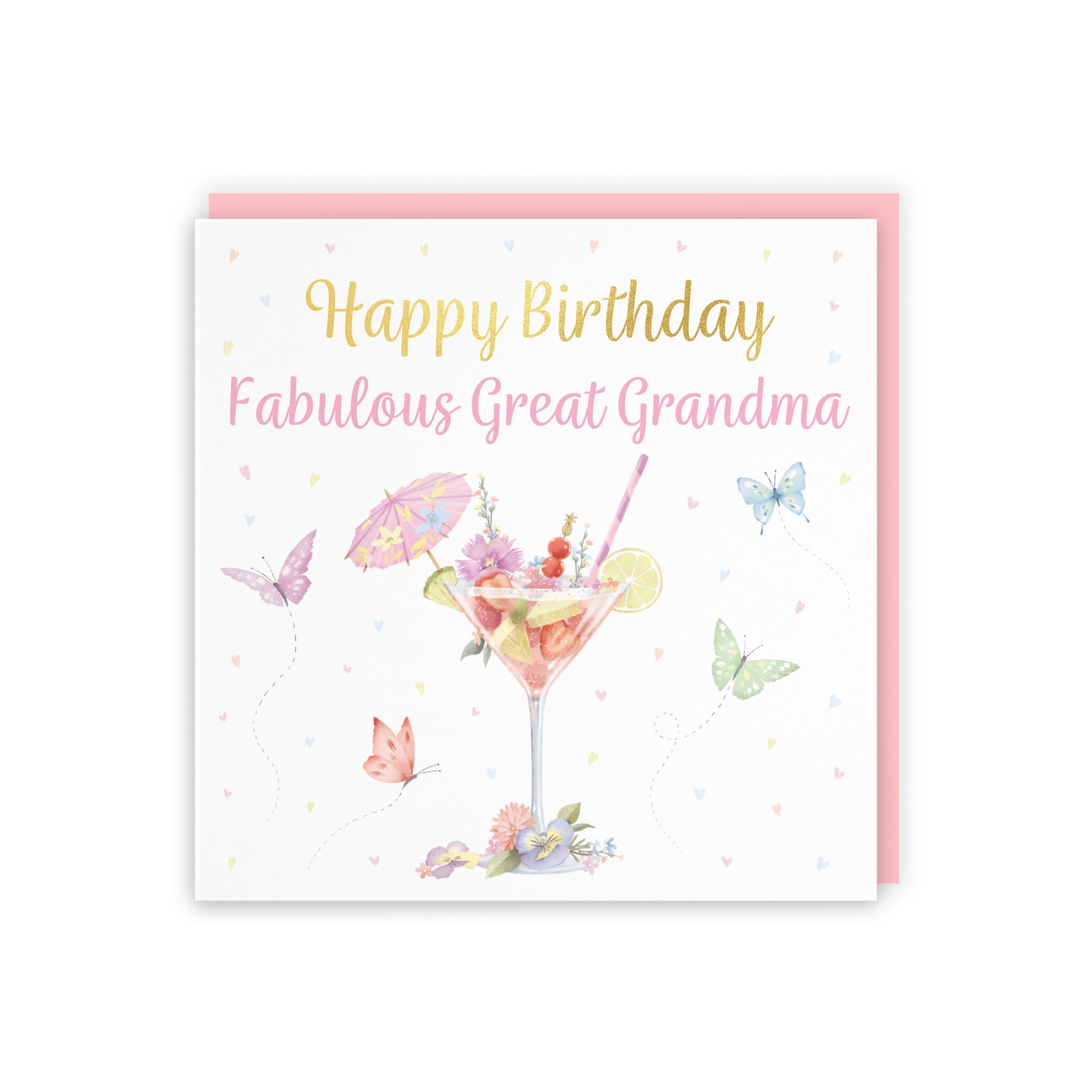 Hunts England - Great Grandma Pink Cocktail And Butterflies Birthday Card - Gold Foil - Milo's Gallery - Drinks, Flowers, Hearts Female Birthday Card For Great Grandma.