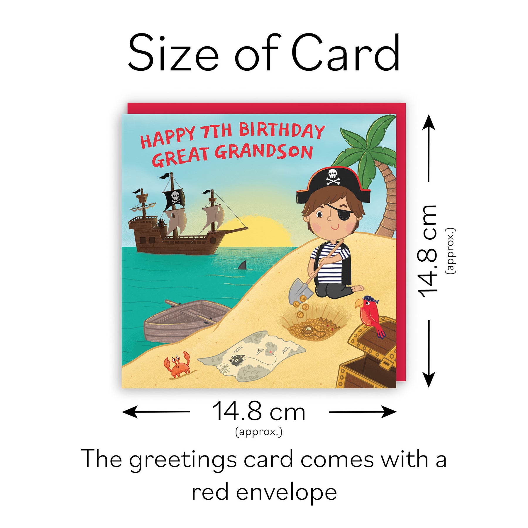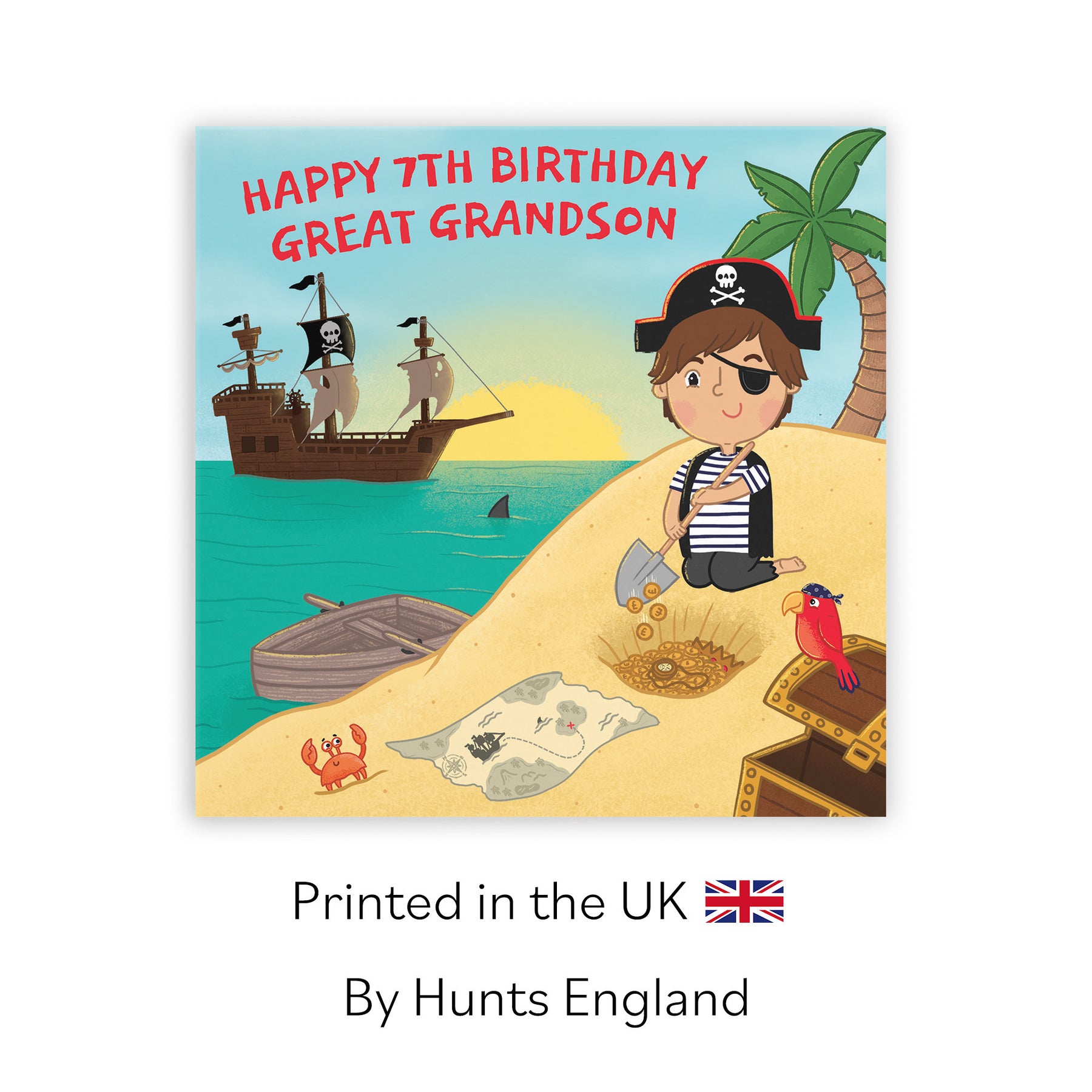 Hunts England - Great Grandson 7th Pirate Birthday Card - Happy 7th Birthday - Great Grandson - Treasure Map - Imagination Collection.