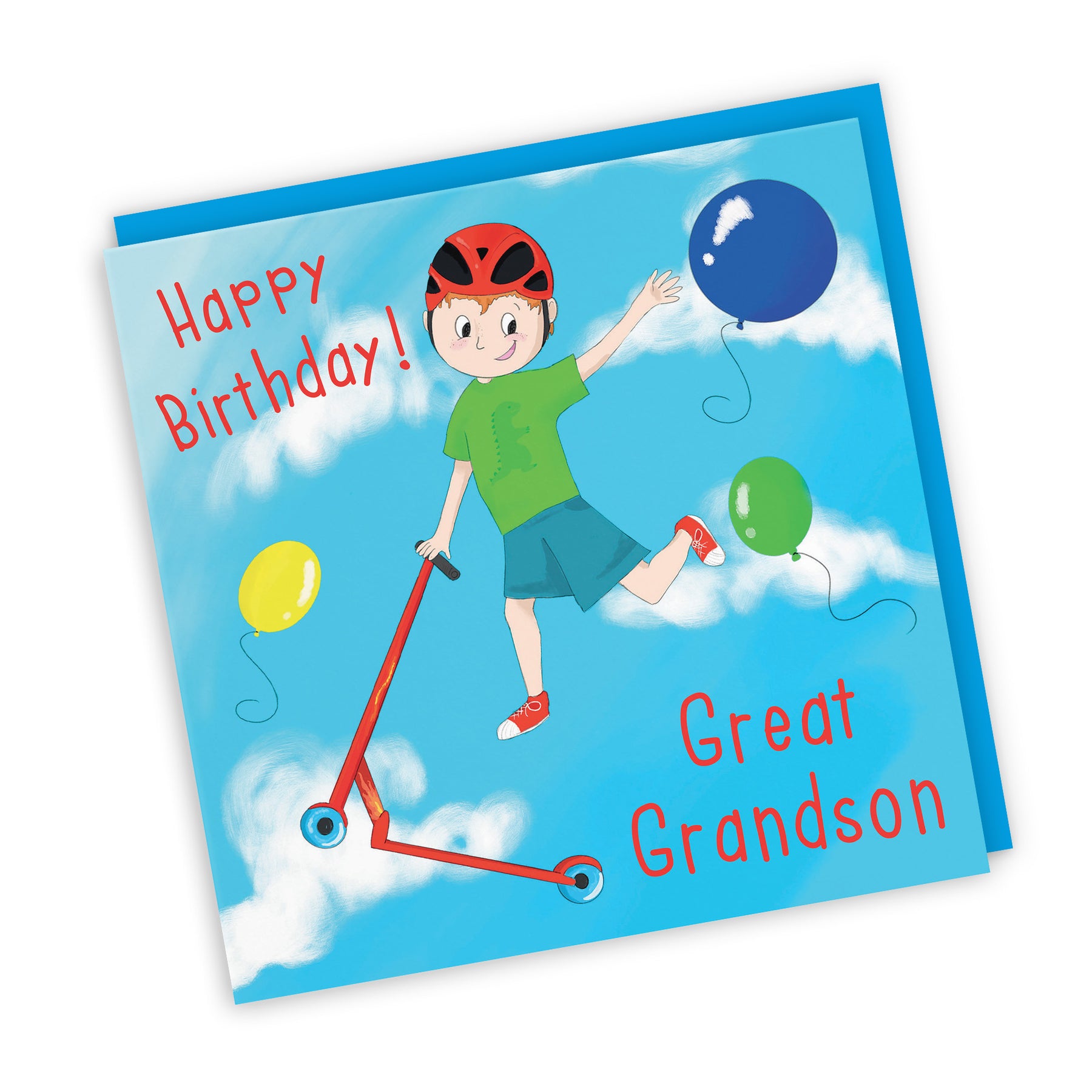 Hunts England - Great Grandson Boys Tricks Scooter Children's Birthday Card - Happy Birthday! - Great Grandson - Kids Card - Adventurers Collection.