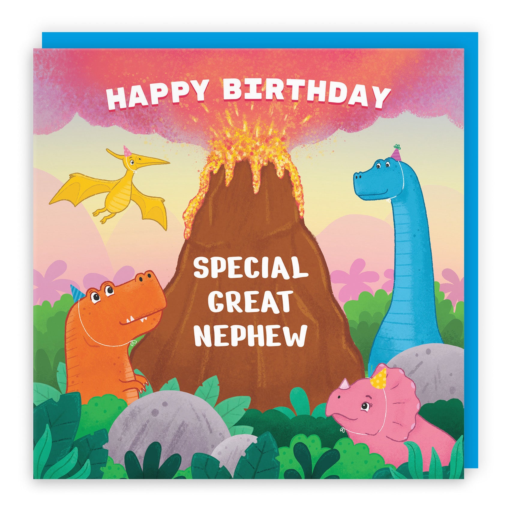 Hunts England - Great Nephew Dinosaur Children's Birthday Card - Happy Birthday - Special Great Nephew - Dinosaurs & Volcano - Imagination Collection.