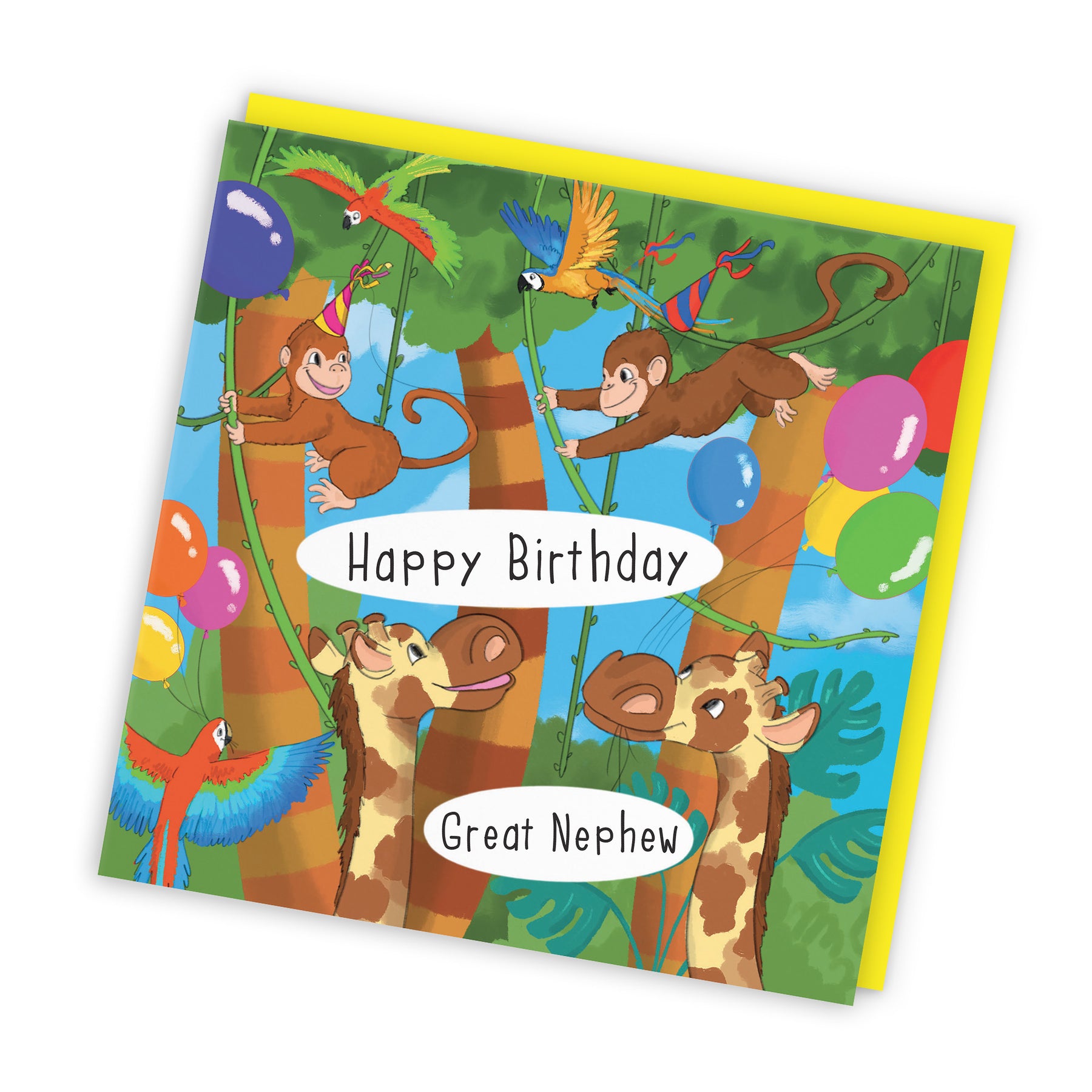 Hunts England - Great Nephew Monkey Birthday Card - Happy Birthday - Great Nephew - Monkeys, Giraffes & Parrots Kids Card - Jungle Collection.