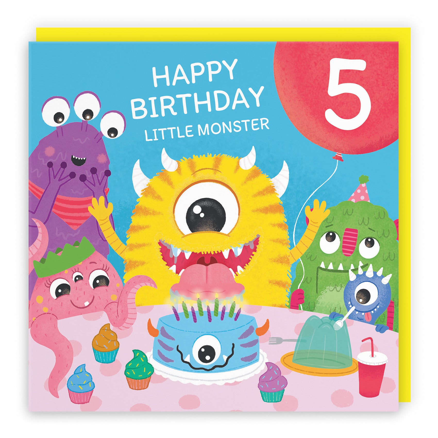 Hunts England - 5th Birthday Boys / Girls Monsters Party Card - Happy Birthday - Little Monster - 5 - Age 5 - Imagination Collection.