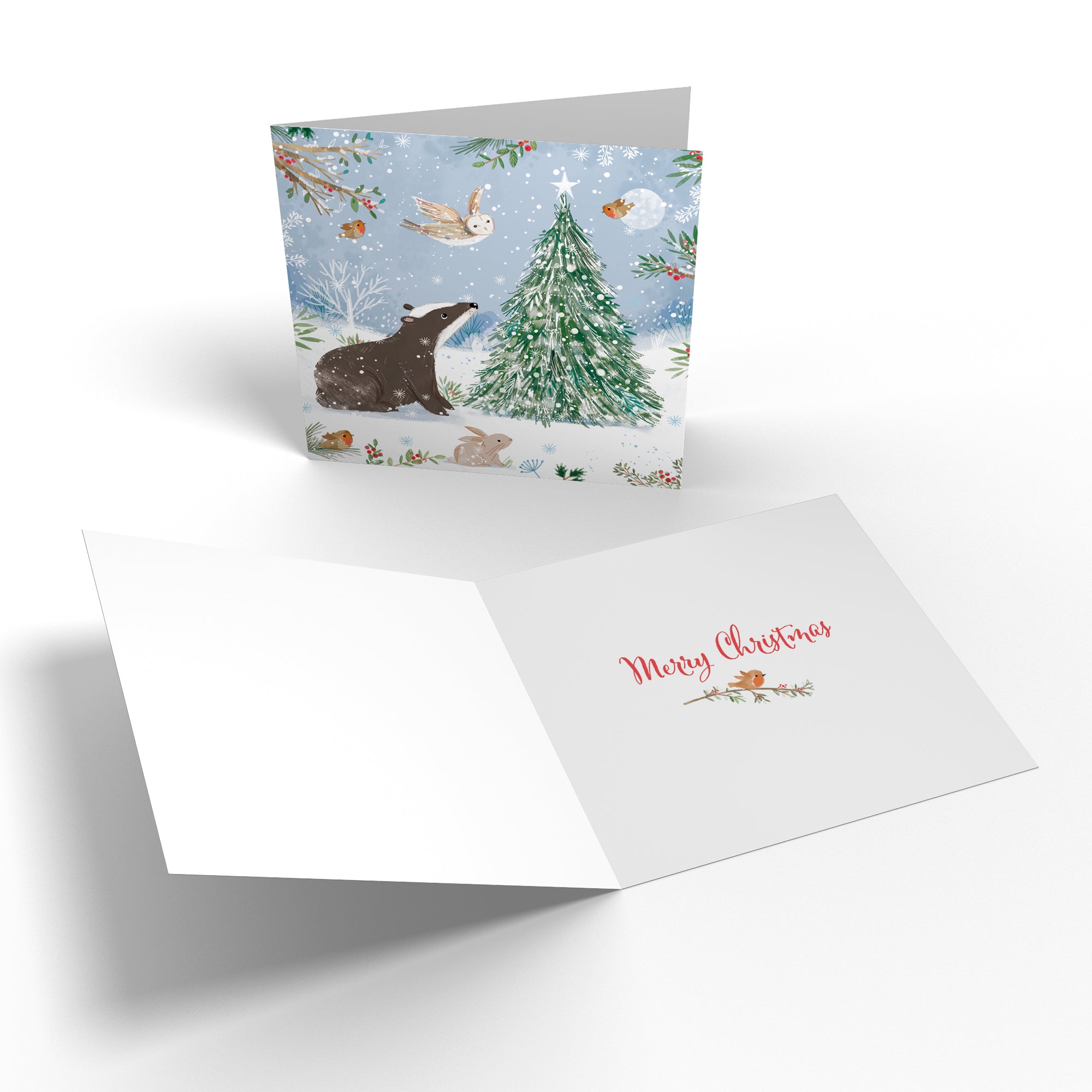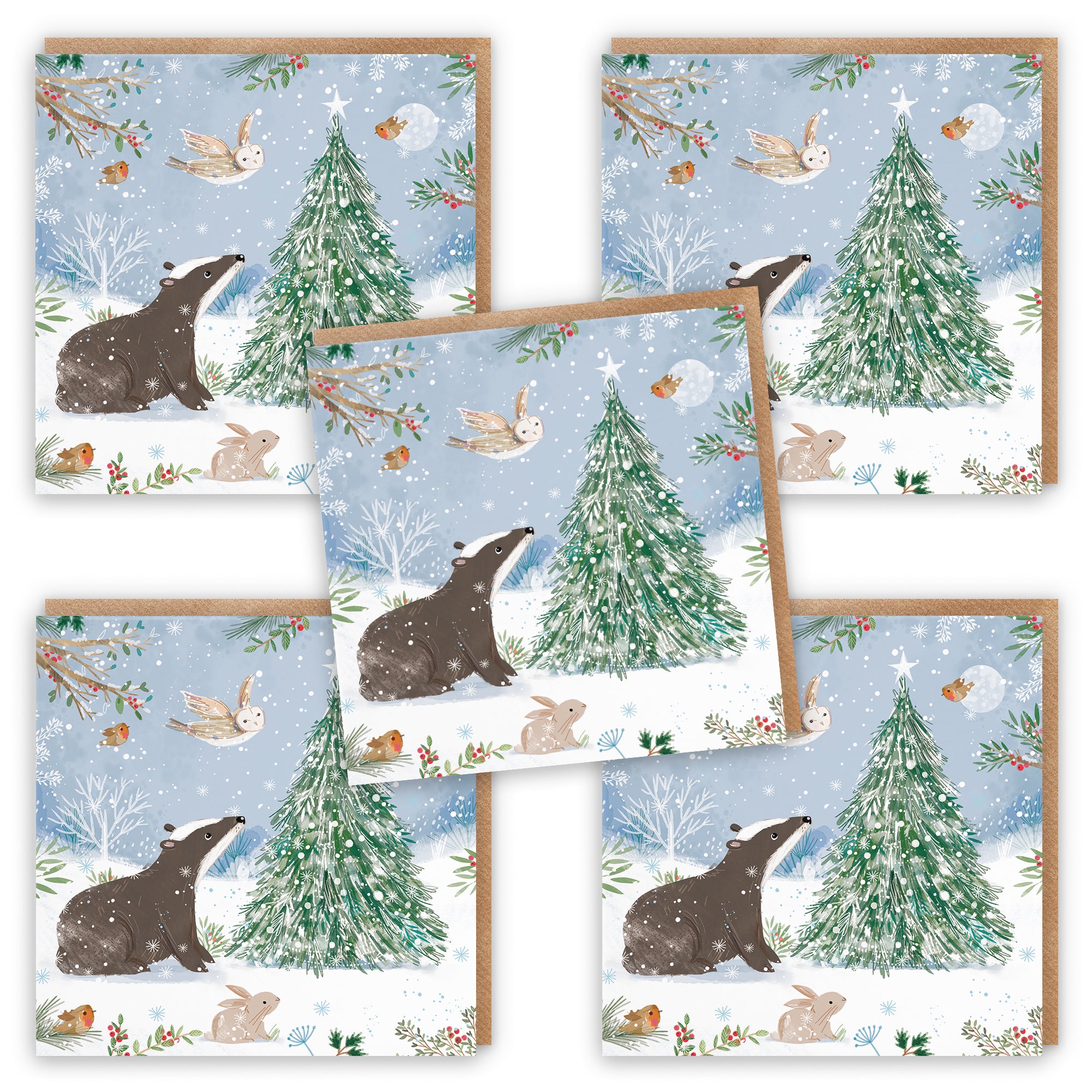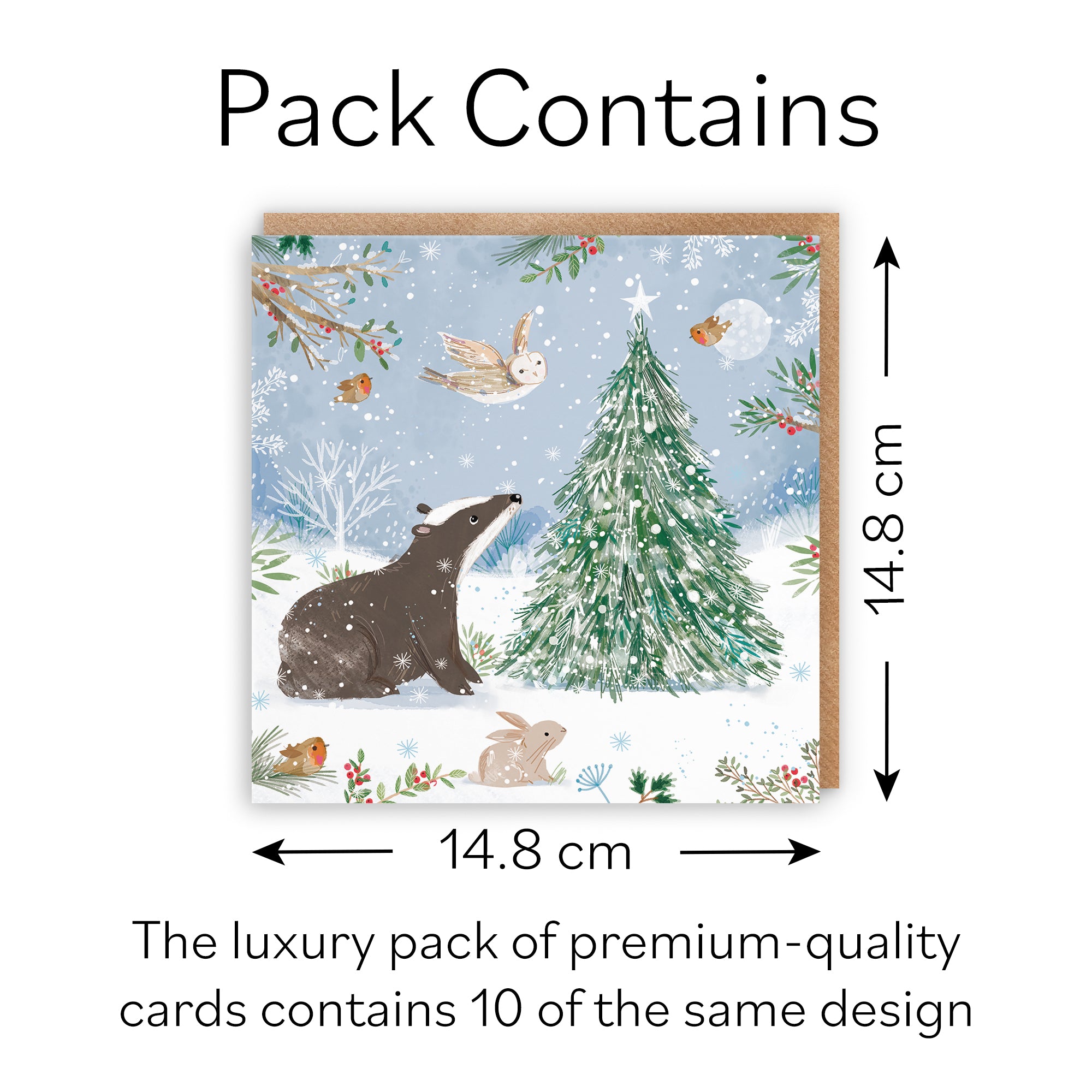 Hunts England - Badger Family Fun Pack Of 10 Christmas Cards For Boys, Girls, Men, Women - Nature's Treasures - For Kids, Children, Adults - Happy Animal Cute Merry Multipack Xmas Cards.