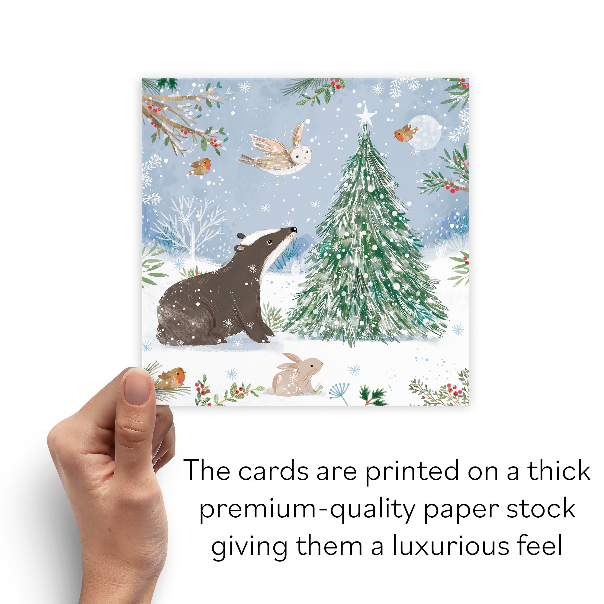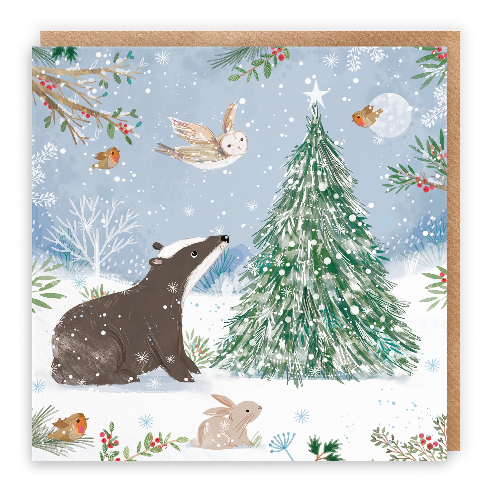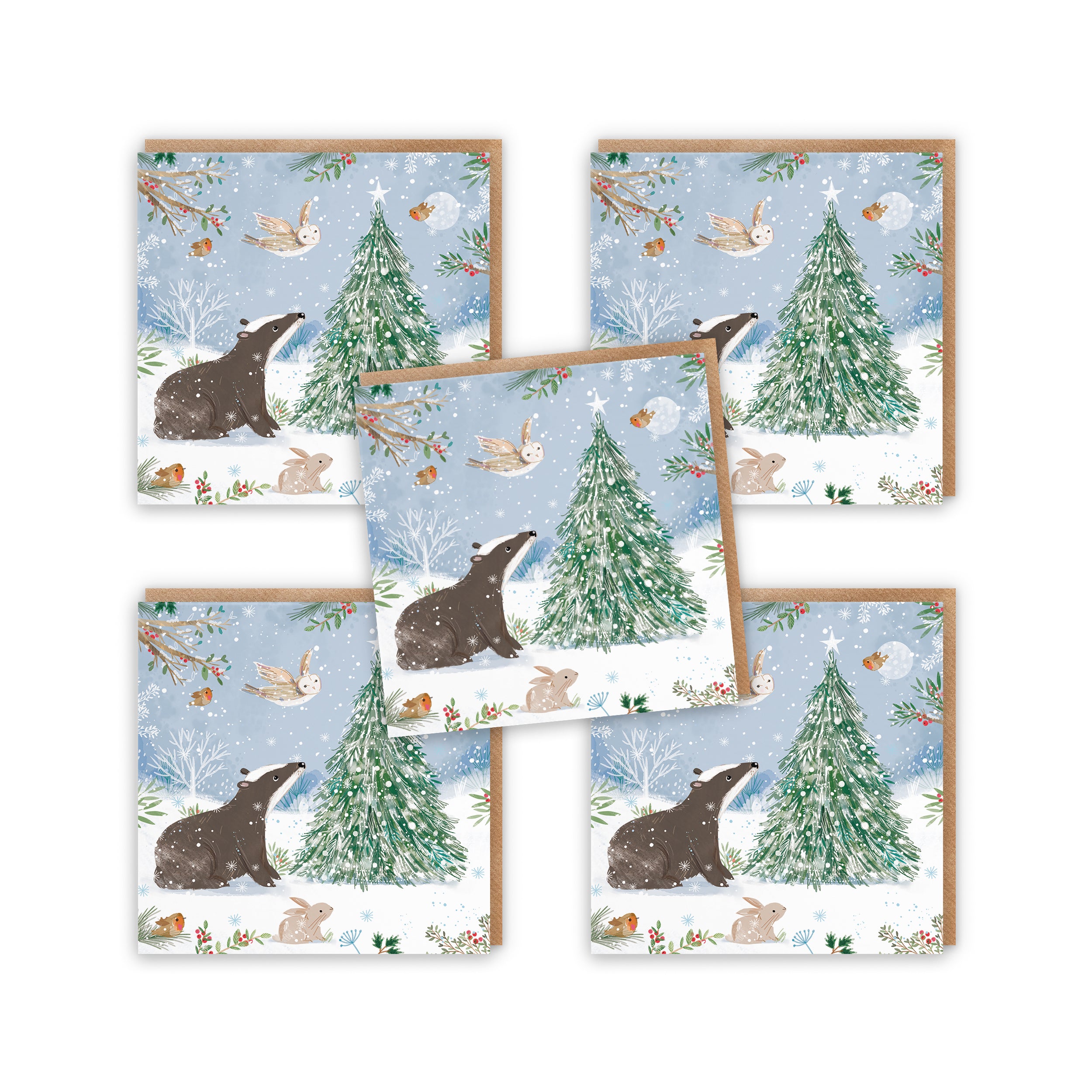 Hunts England - Badger Family Fun Pack Of 10 Christmas Cards For Boys, Girls, Men, Women - Nature's Treasures - For Kids, Children, Adults - Happy Animal Cute Merry Multipack Xmas Cards.