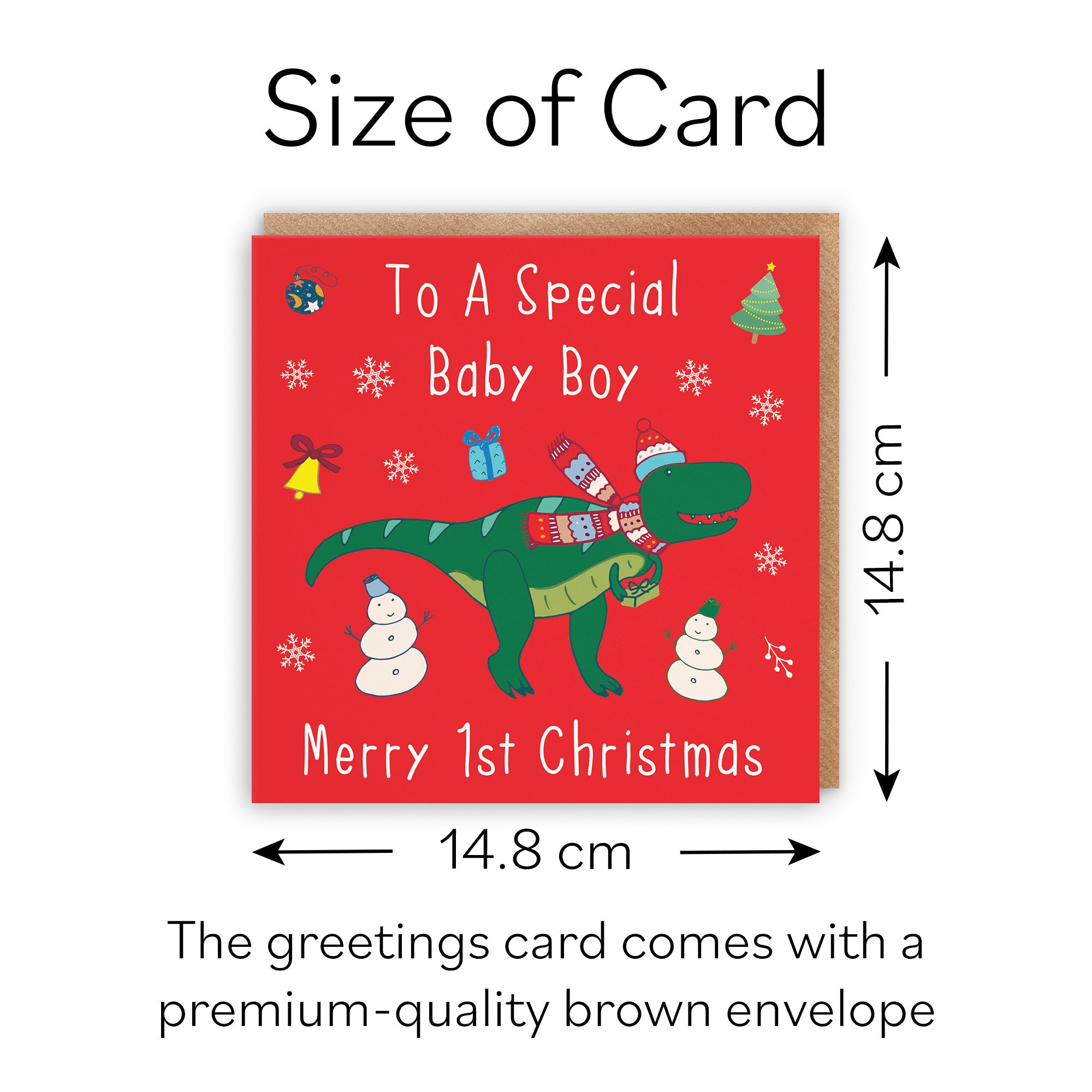 CARD MEASURES 14.8 x 14.8 cm - The greetings card is printed on medium-weight paper stock and comes with an envelope which measures 15.5 x 15.5 cm.