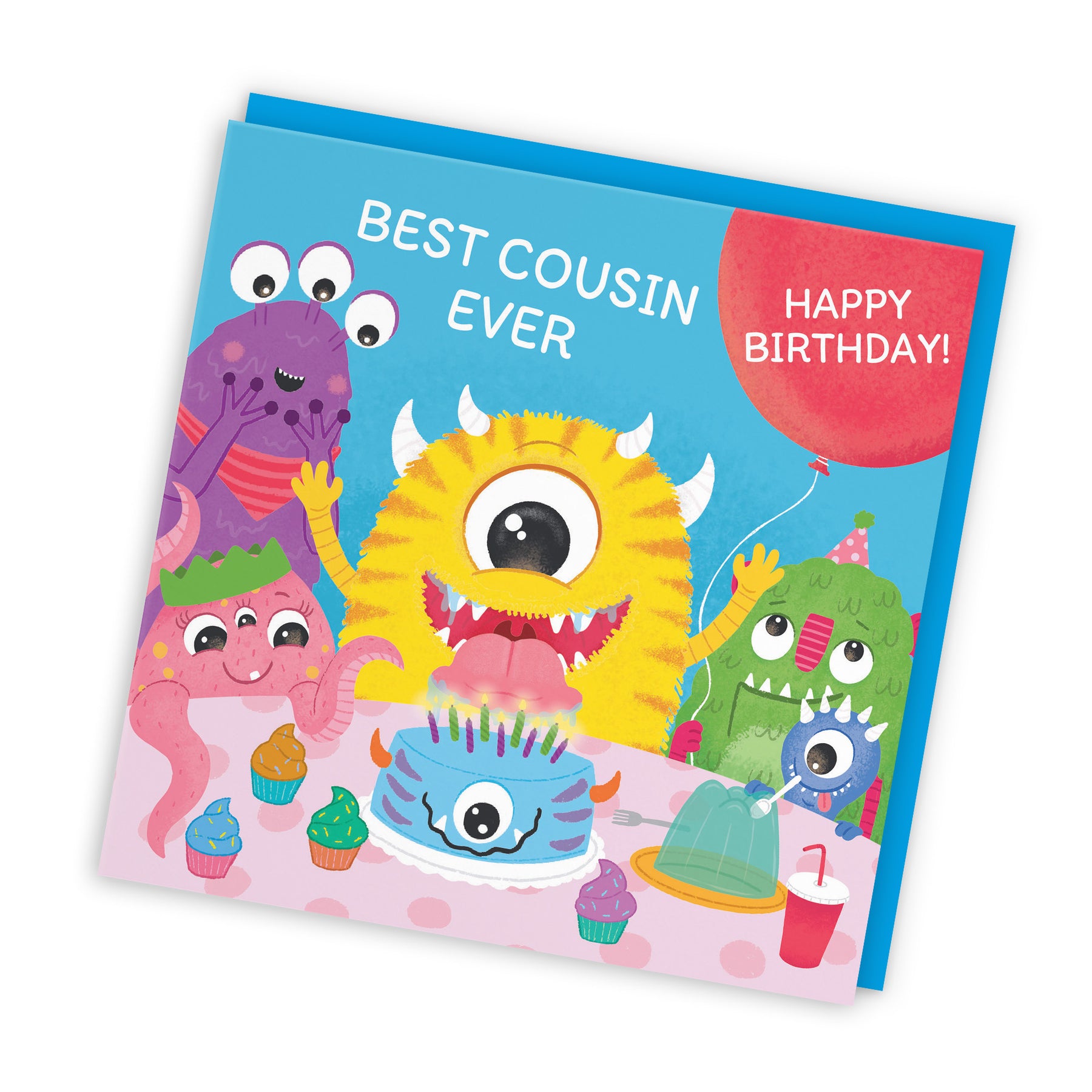 Hunts England - Cousin Boys Monsters Party Children's Birthday Card - Happy Birthday! - Best Cousin Ever - Imagination Collection.