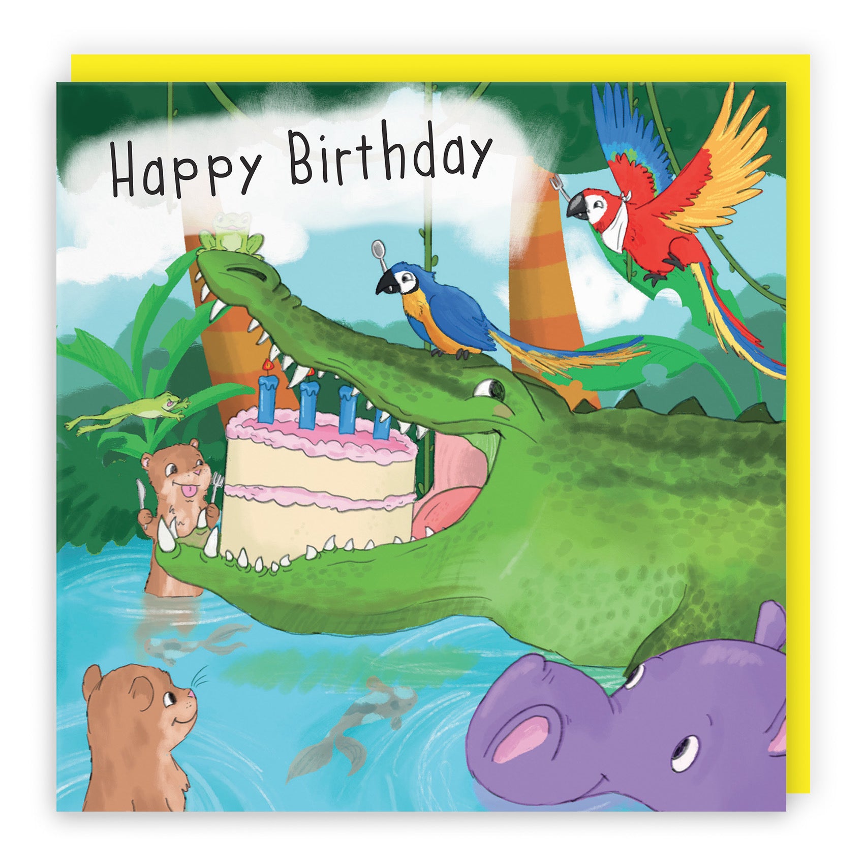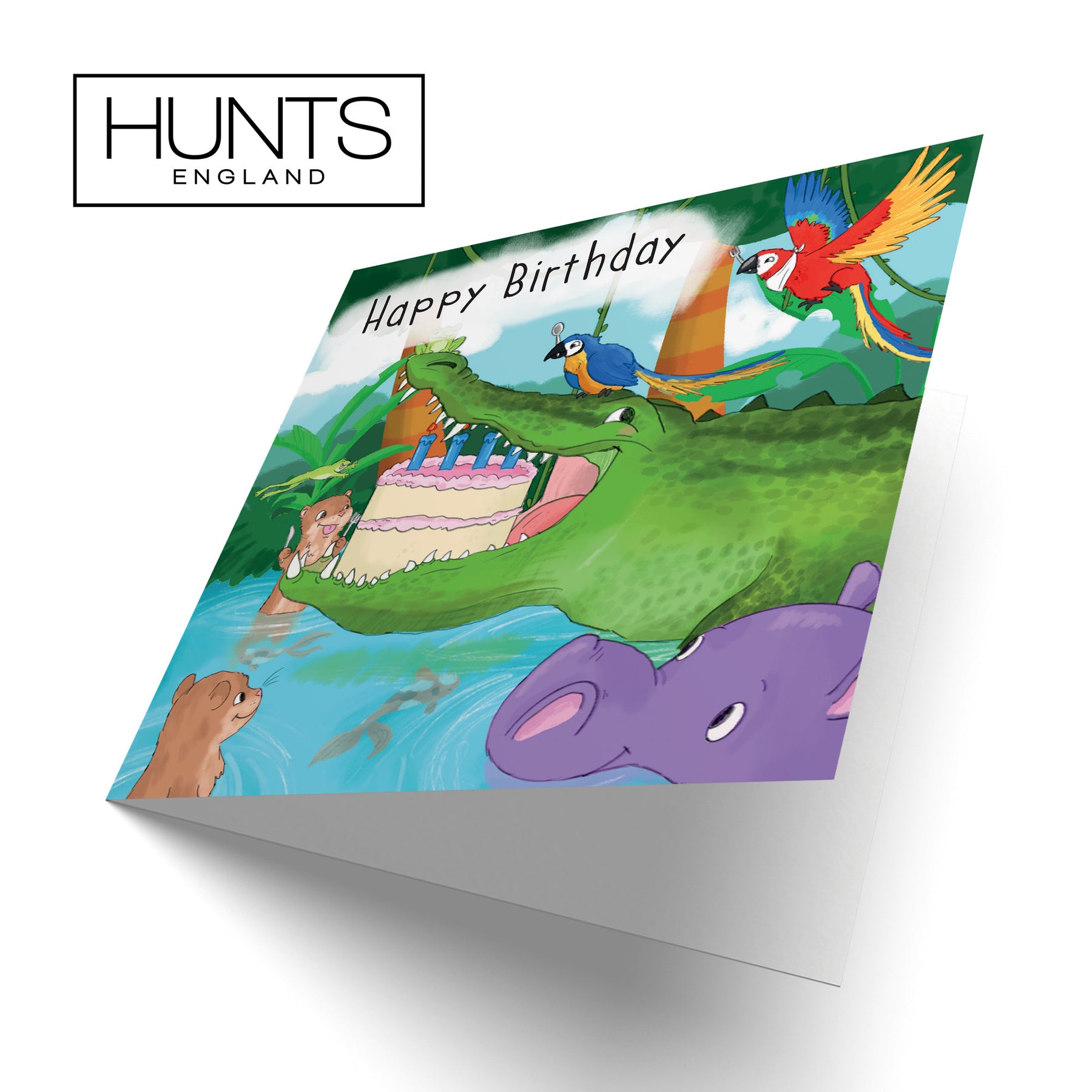 Hunts England - Crocodile Children's Birthday Card - Happy Birthday - Funny Crocodile Eating Cake - Boys / Girls - Kids Card - Jungle Collection.