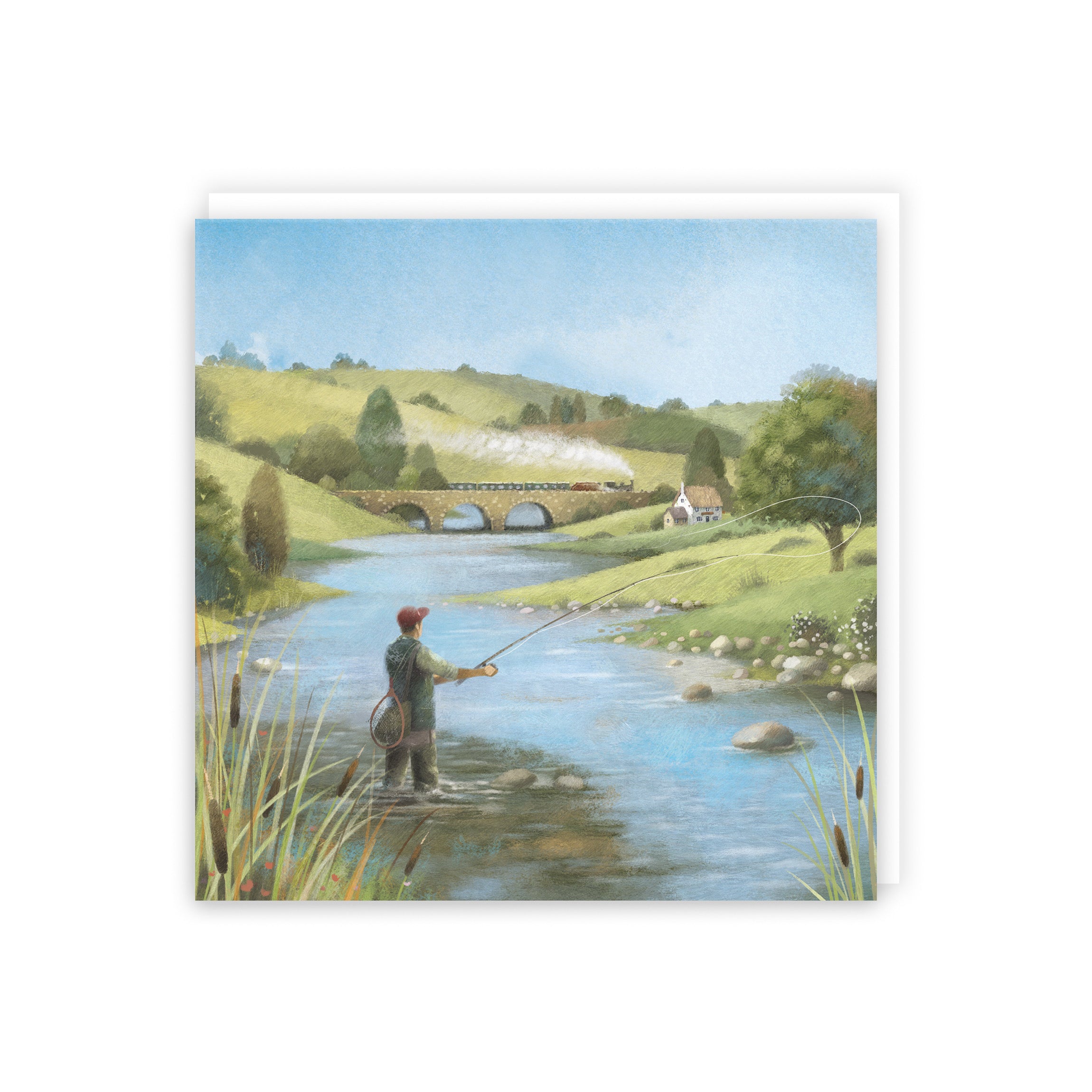 CARD MEASURES 14.8 x 14.8 cm - The fly fishing greetings card is printed on medium-weight paper stock. The card also comes with a white envelope which measures 15.5 x 15.5 cm.