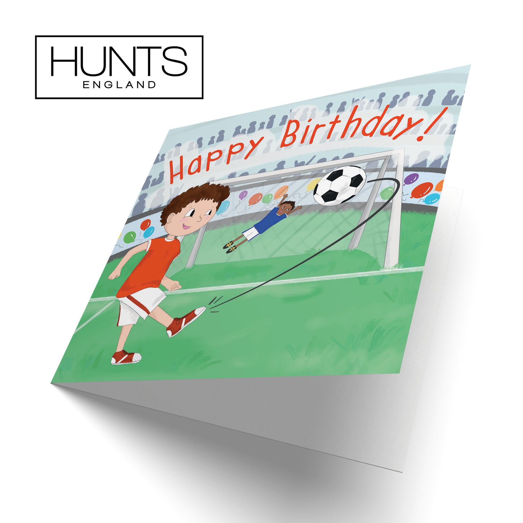 Hunts England - Boys Football Penalty Shoot-out Children's Birthday Card - Happy Birthday! - Kids Football Card - Adventurers Collection.