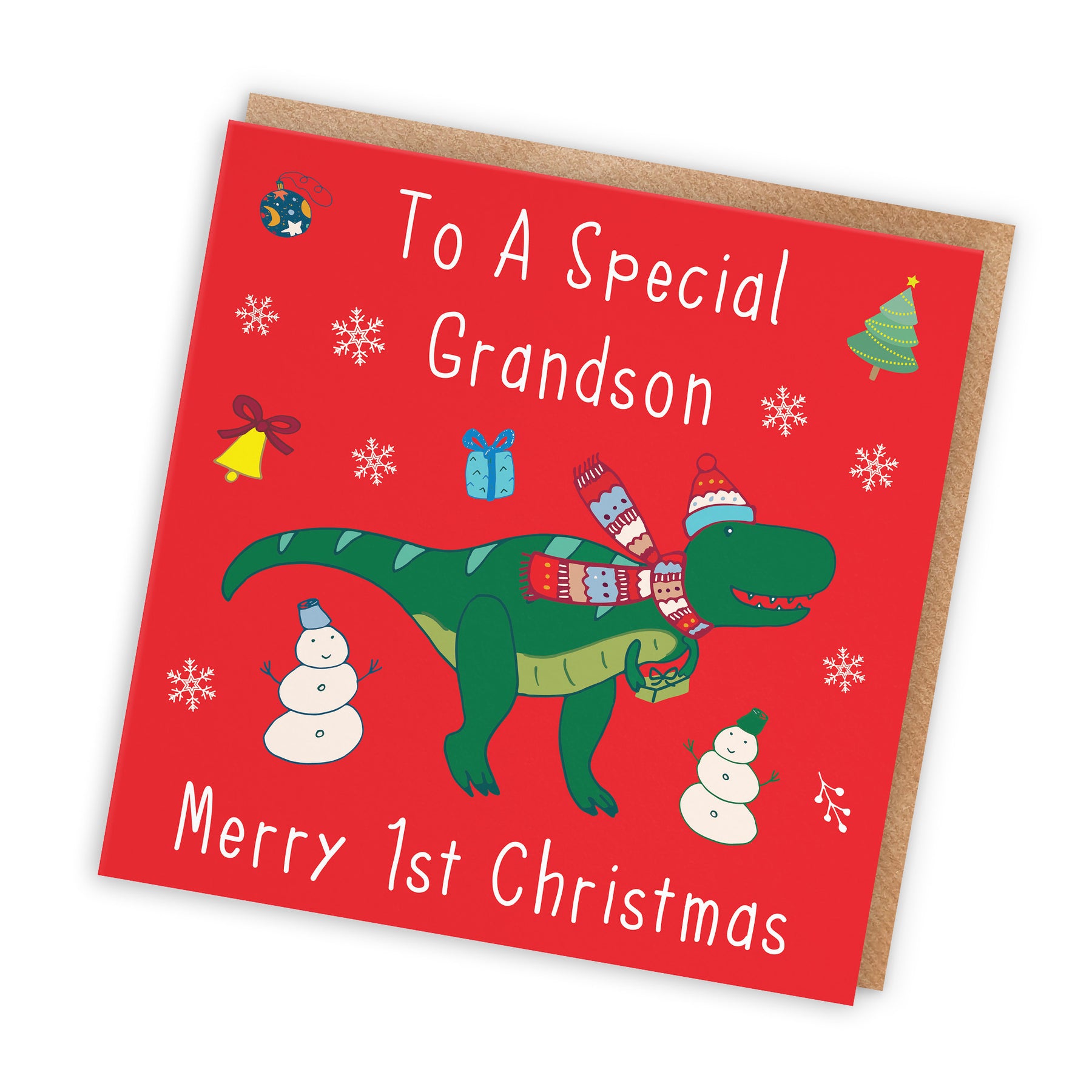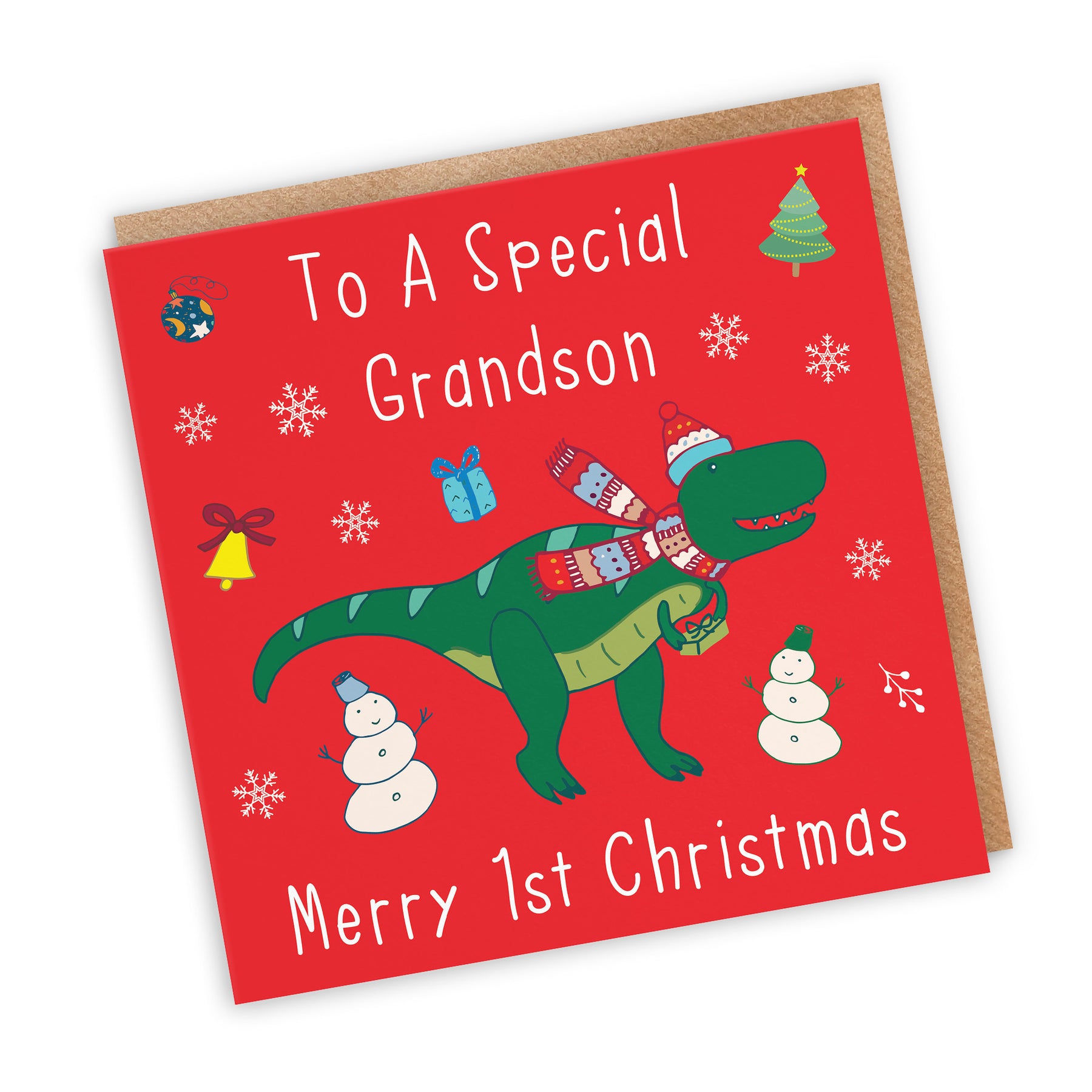 Hunts England - Grandson's 1st Christmas Card - To A Special Grandson - Merry 1st Christmas - Dinosaur Collection.