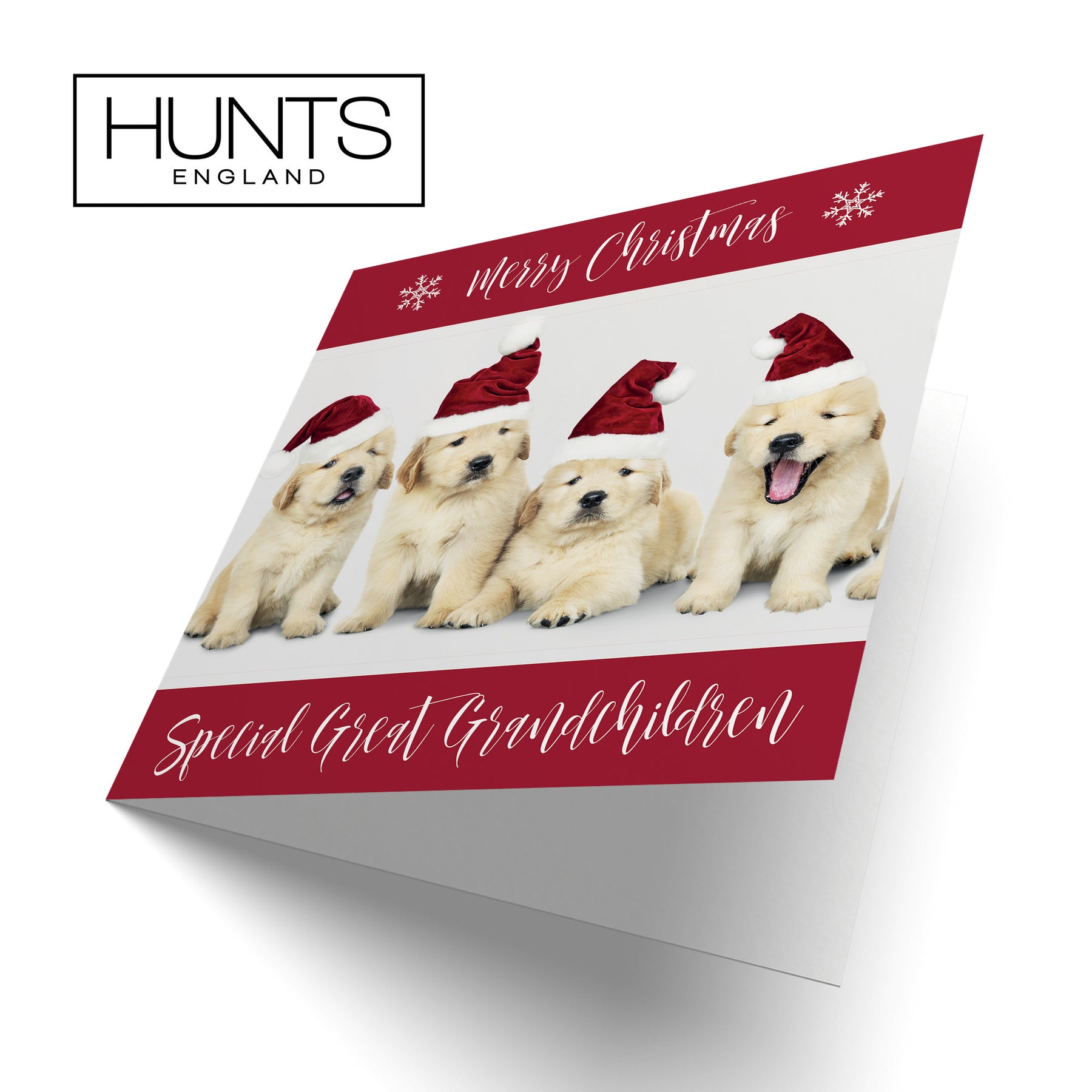 Hunts England - Great Grandchildren Christmas Card - Merry Christmas - Special Great Grandchildren - Puppy Collection.