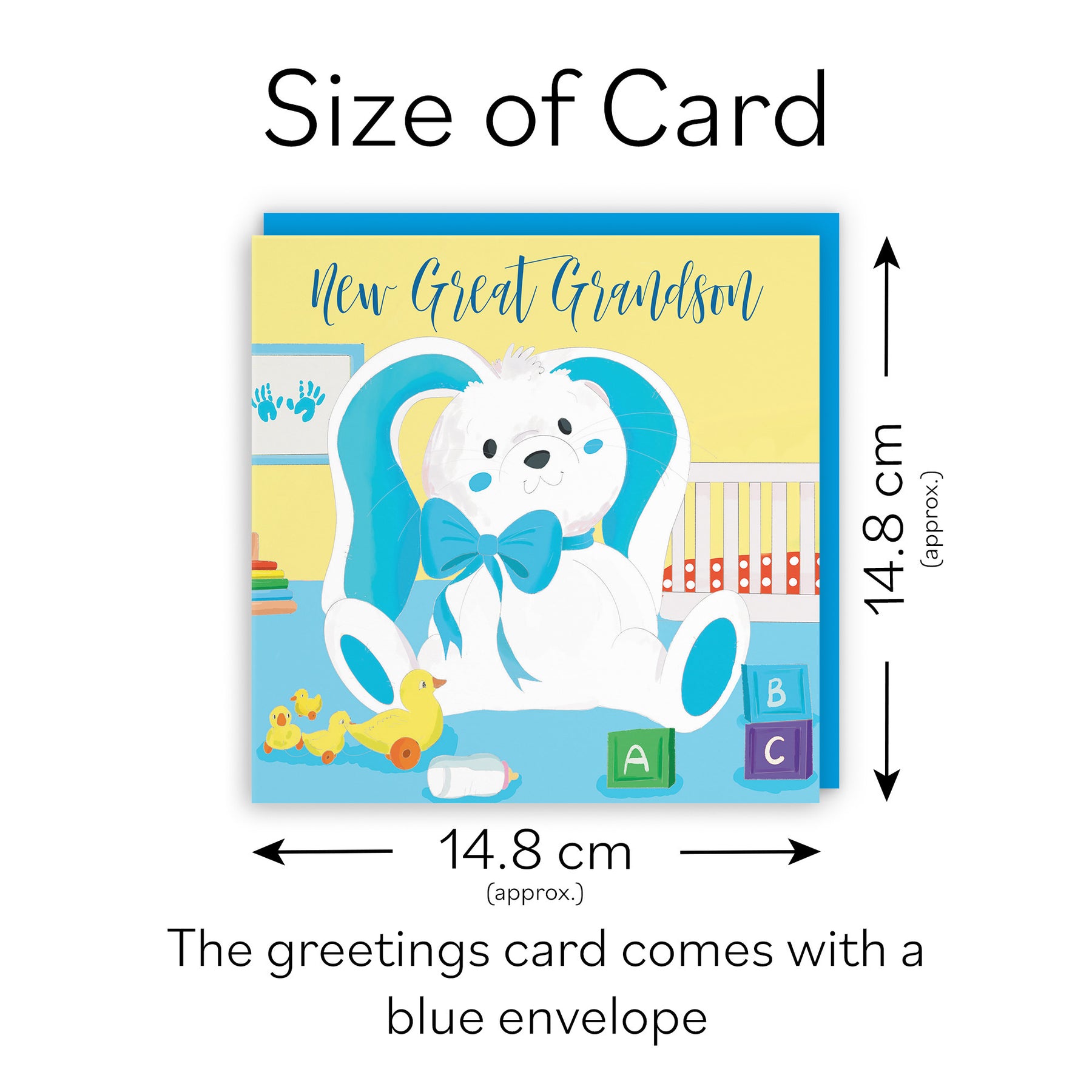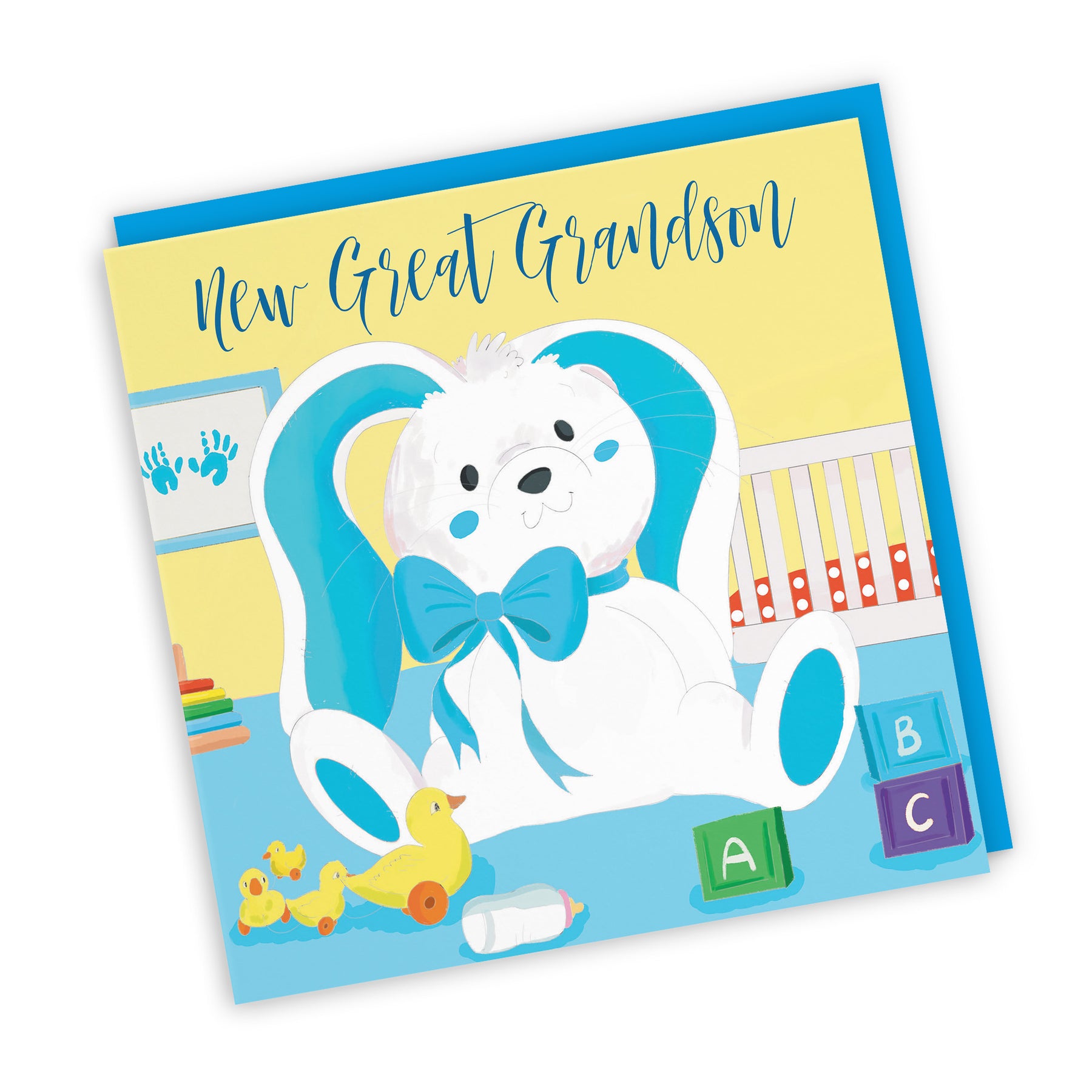 Hunts England - New Great Grandson Cute New Baby Congratulations Card - Newborn - Blue Rabbit - Classic Collection.